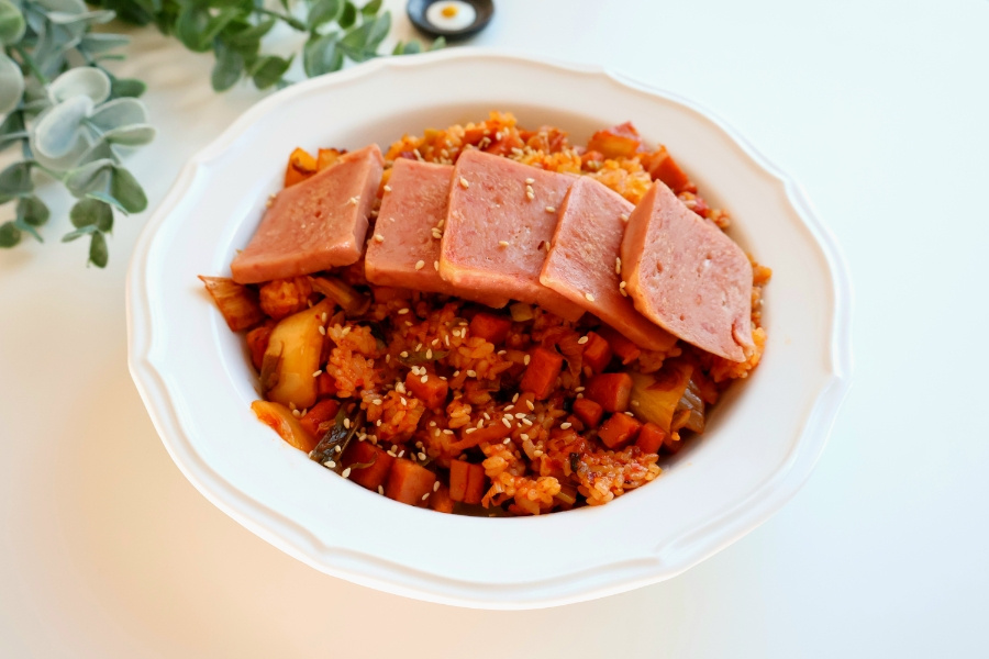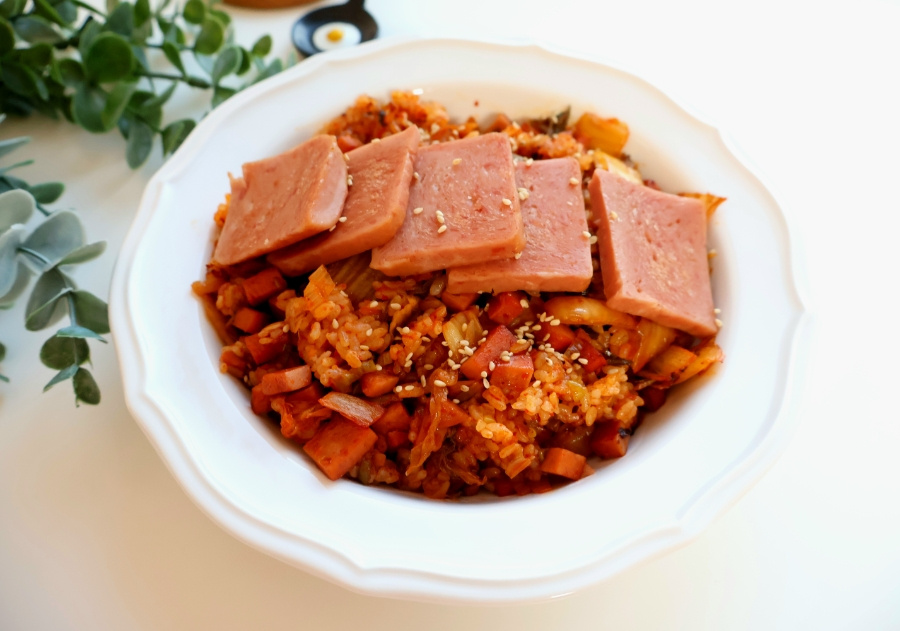 스팸에서 기름이 나와 풍미를 끌어올려 주어요.