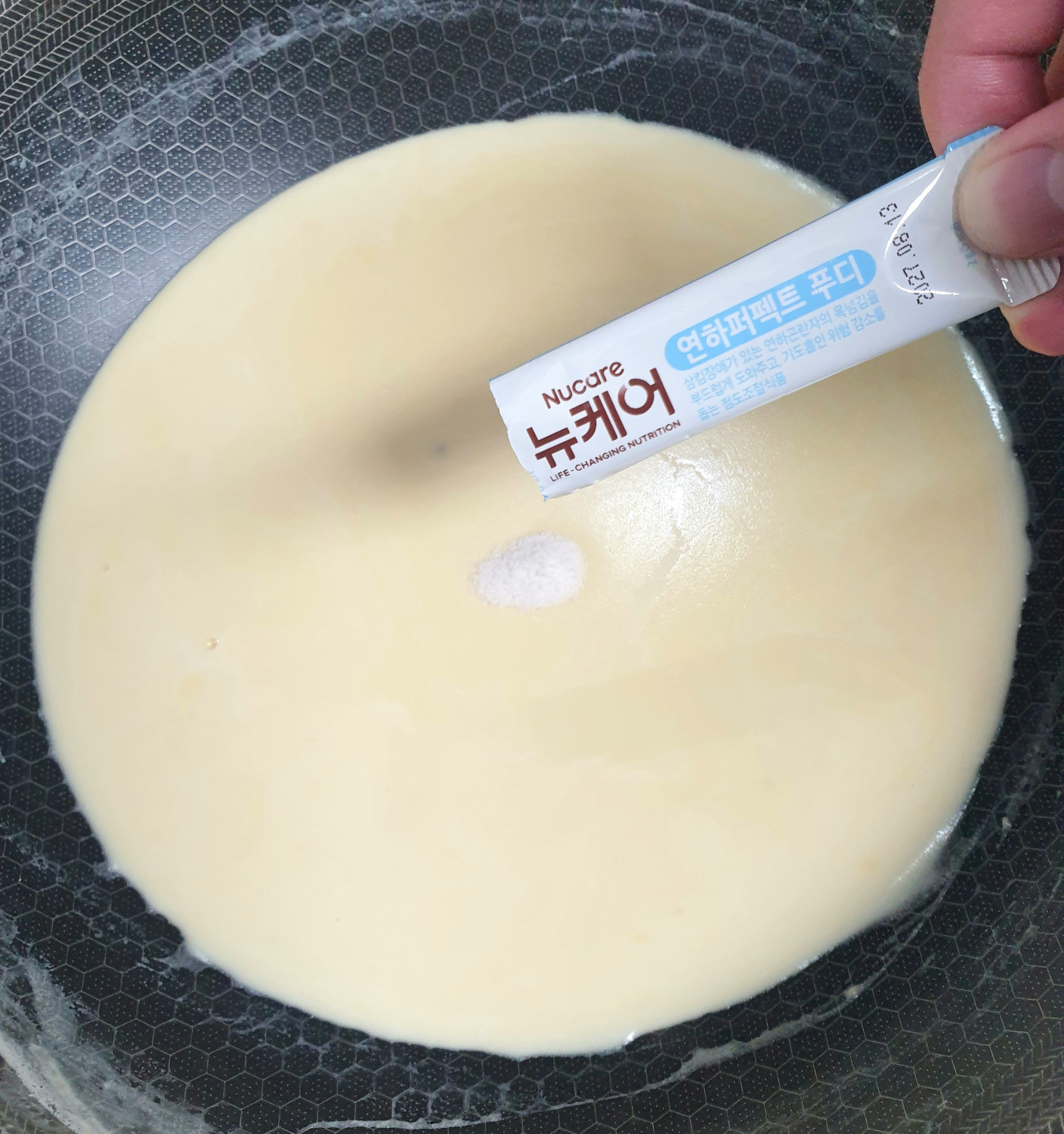 약불 상태에서 작업을 하면 우유의 비린내가 나지 않아요.
