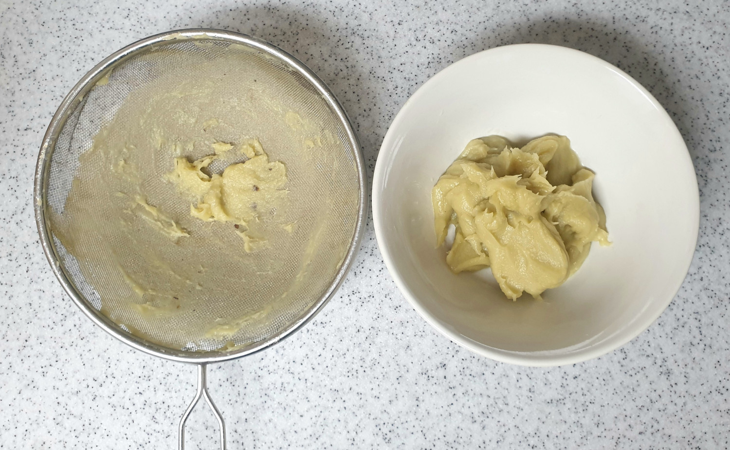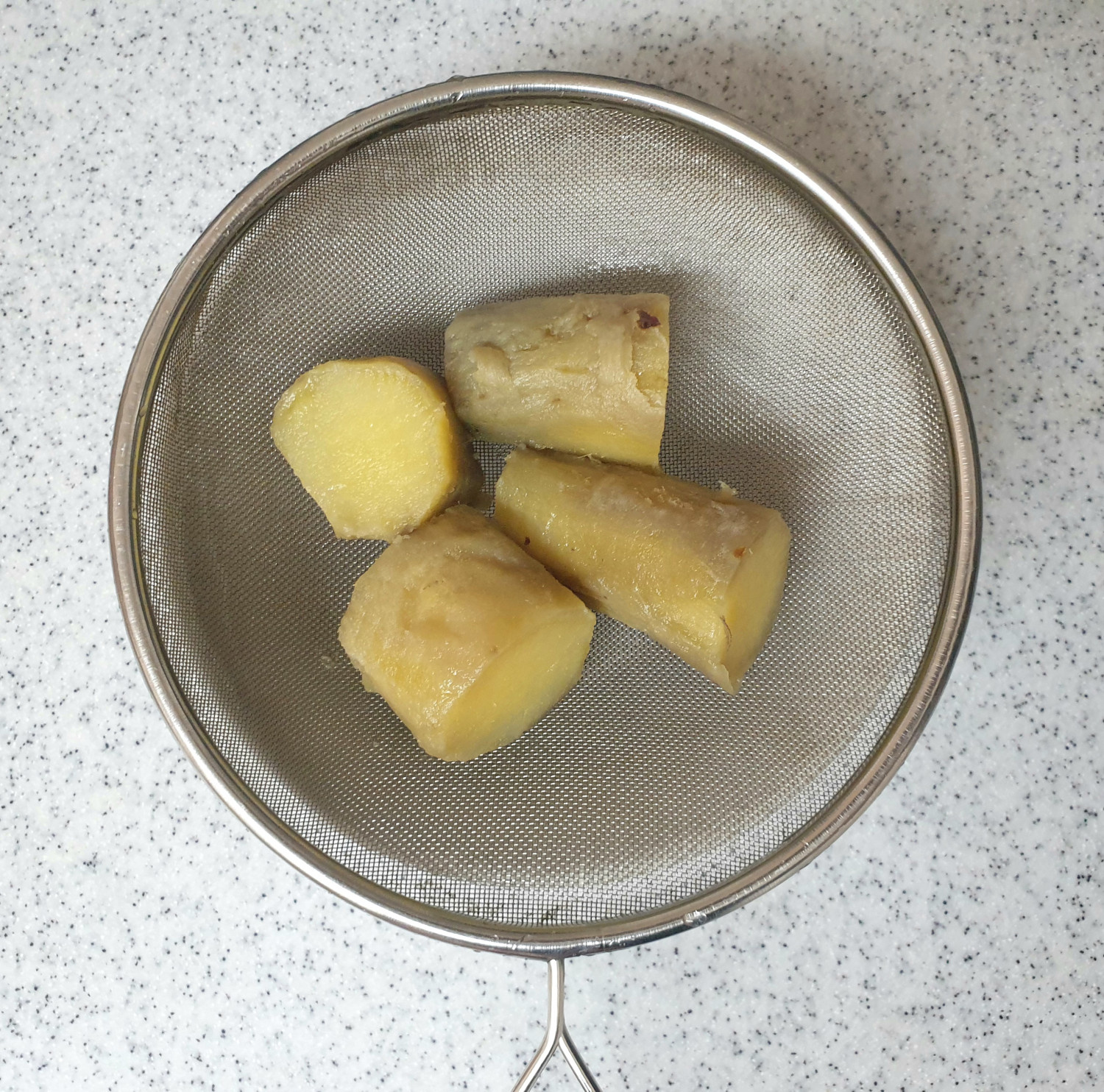 고구마에 열기가 있는 상태에서 작업을 하면 부드럽고 빠르게 작업을 할 수 있어요.