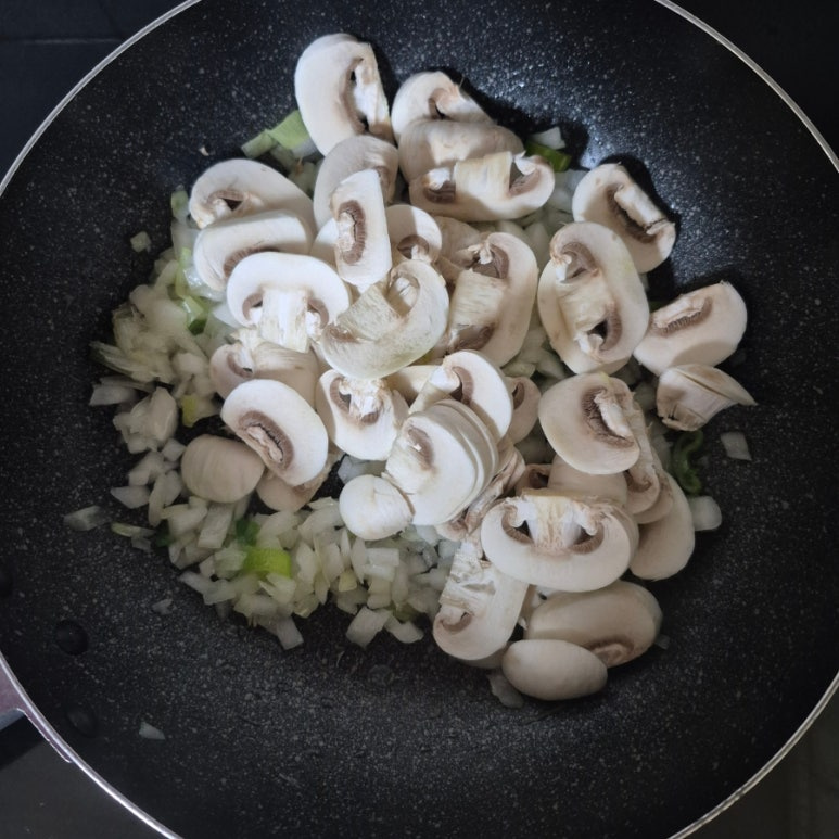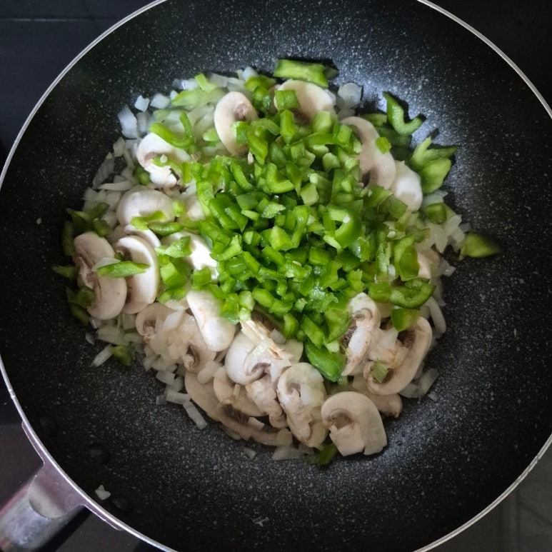 양송이버섯 6개, 청피망 1개, 양파 1/2개