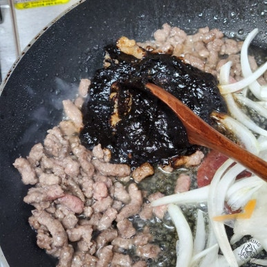 짜장소스가 뻑뻑하다면 맛술1T를 넣어주세요