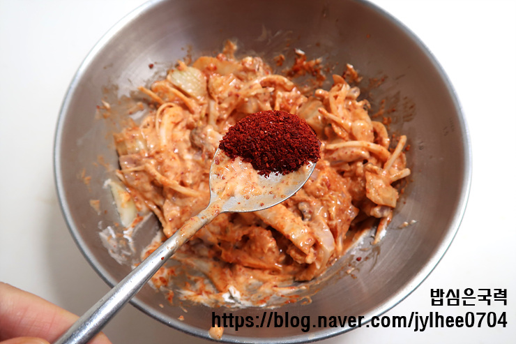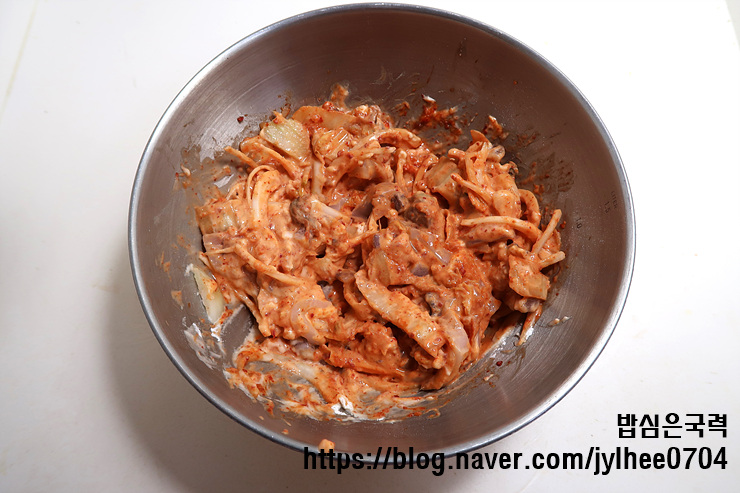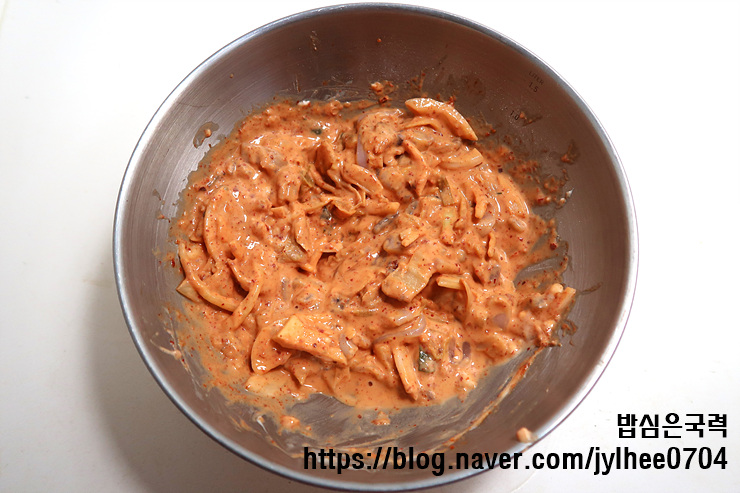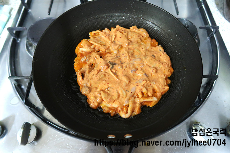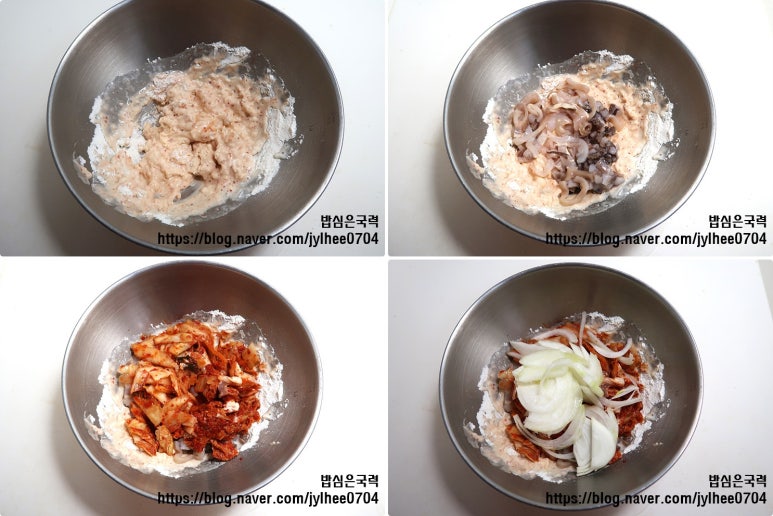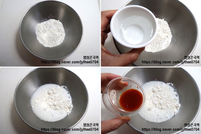 볼에 부침가루1컵, 탄산수 2/3컵,