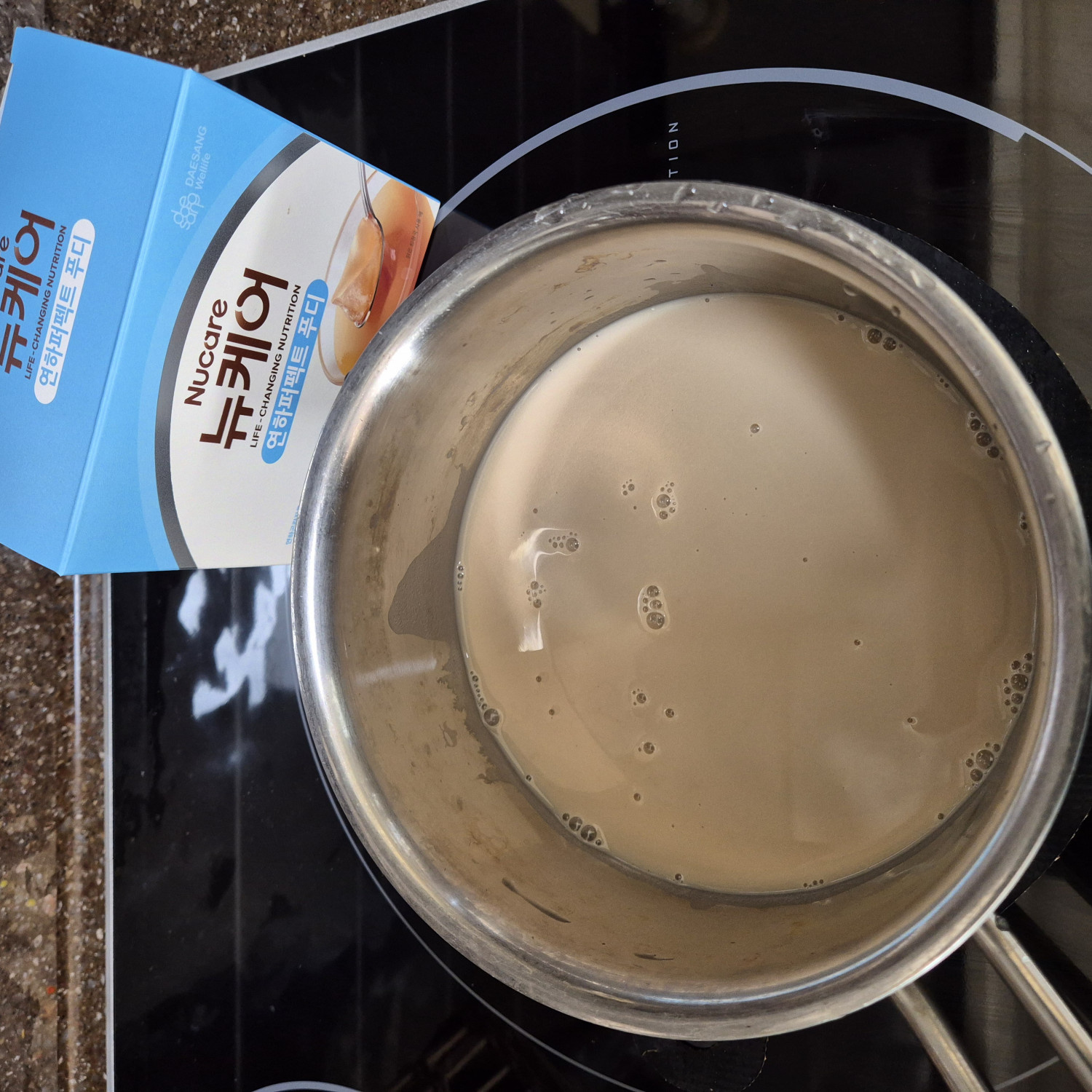 -냄비에 두유한팩(약185ml)넣고 불을 가열전에