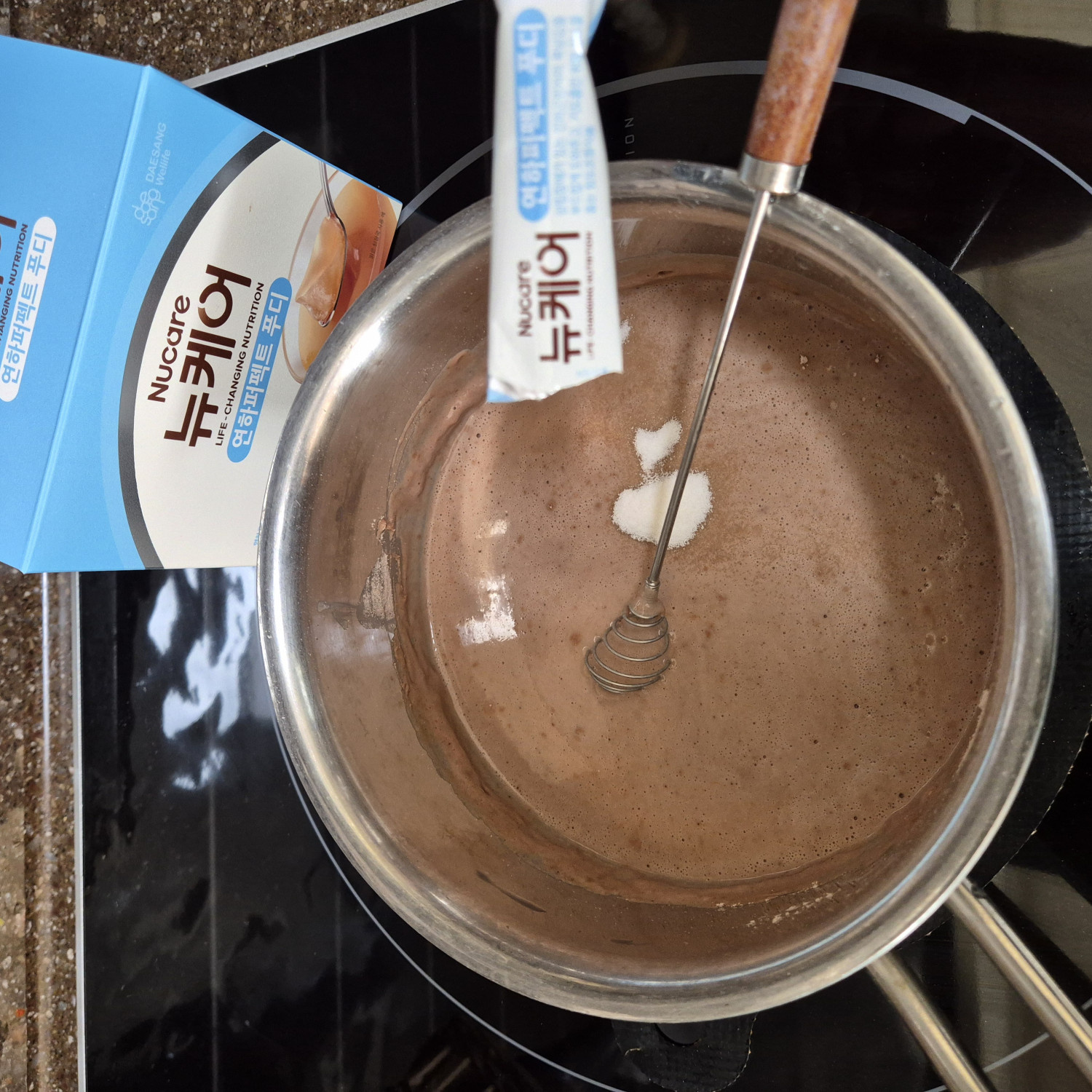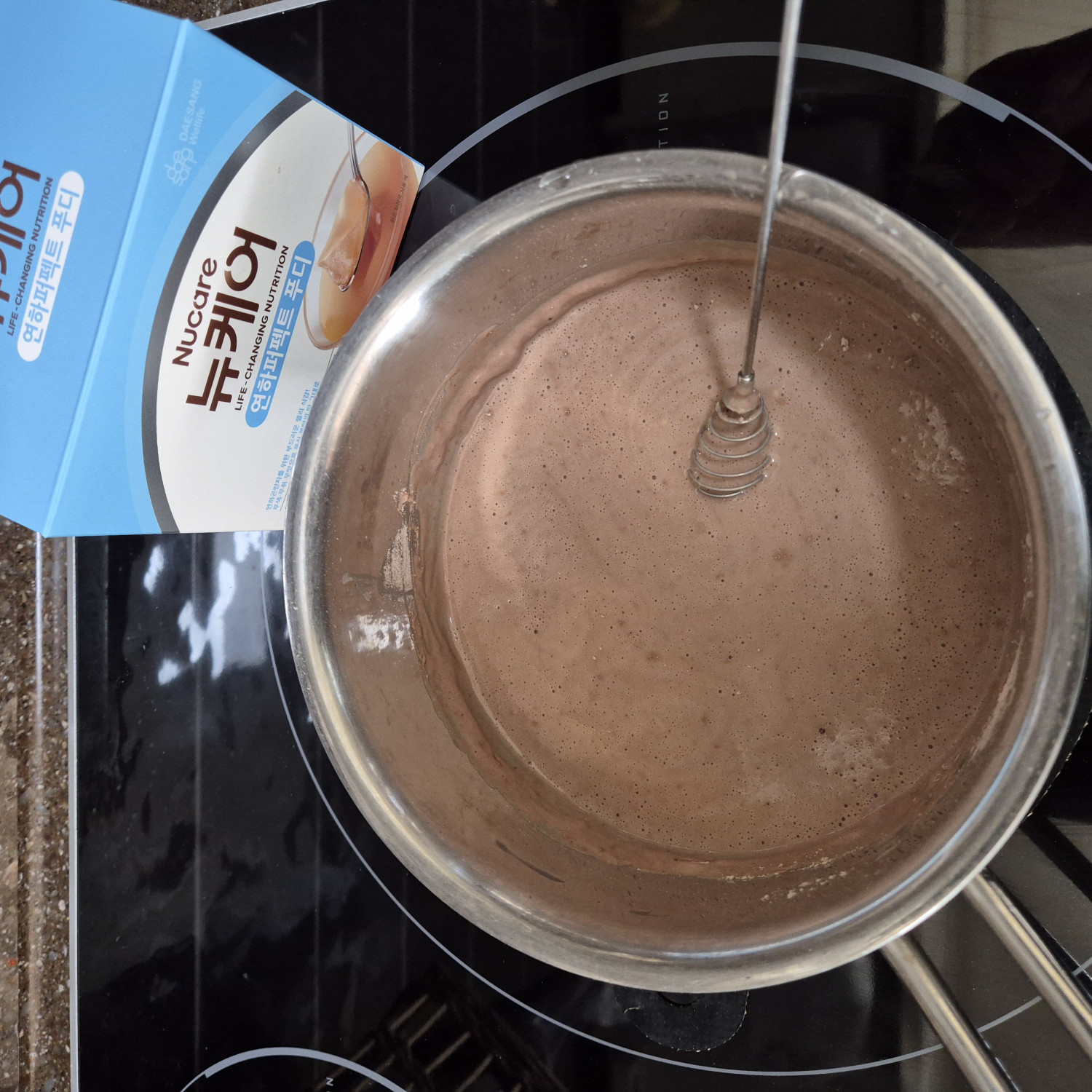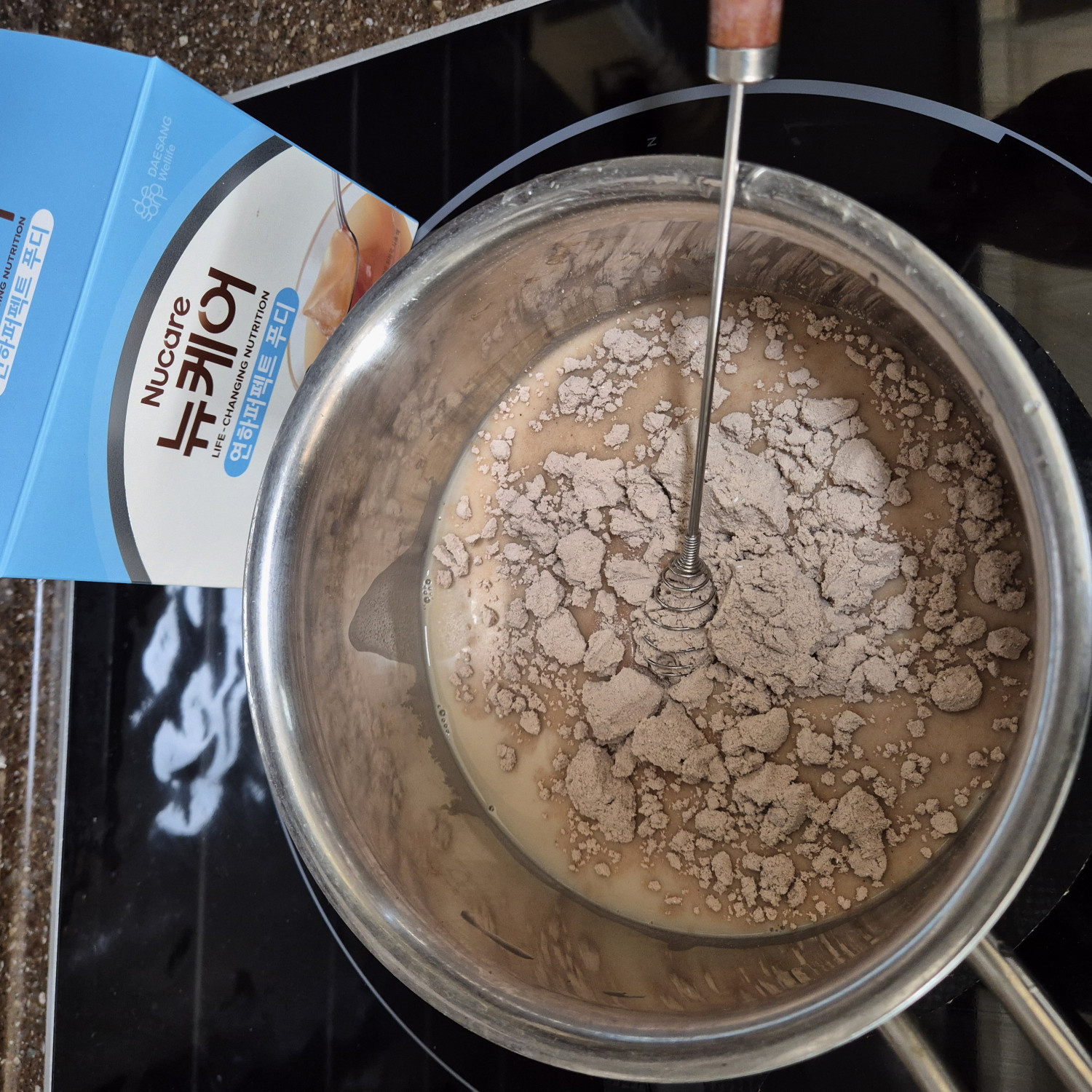 초코맛프로틴 가루 넣어 풀어준다.
