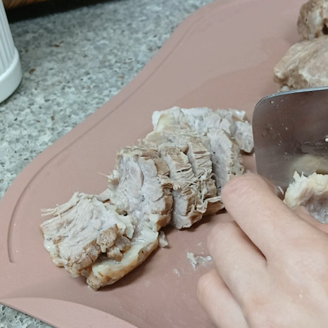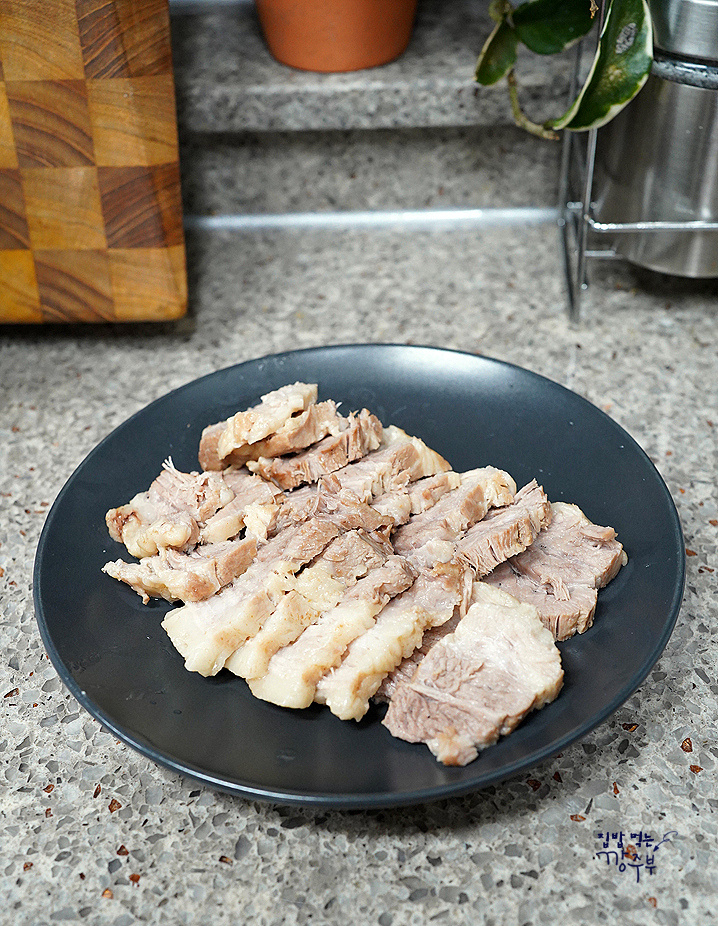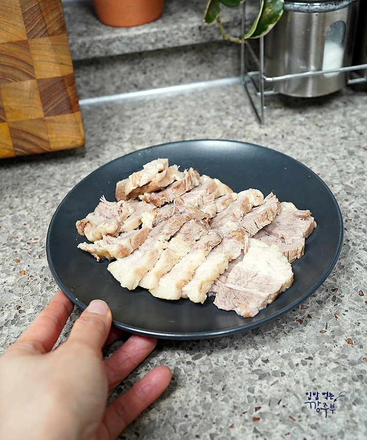 수육도 도마에 올려 충분히 식힌 후 썰어주세요