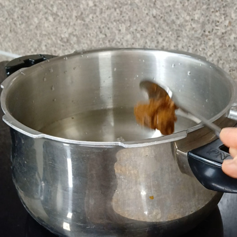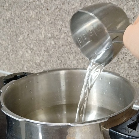 압력솥에 고기가 충분히 잠길 정도의 물을 붓고 소주 반컵, 된장 1스푼 넣어주세요