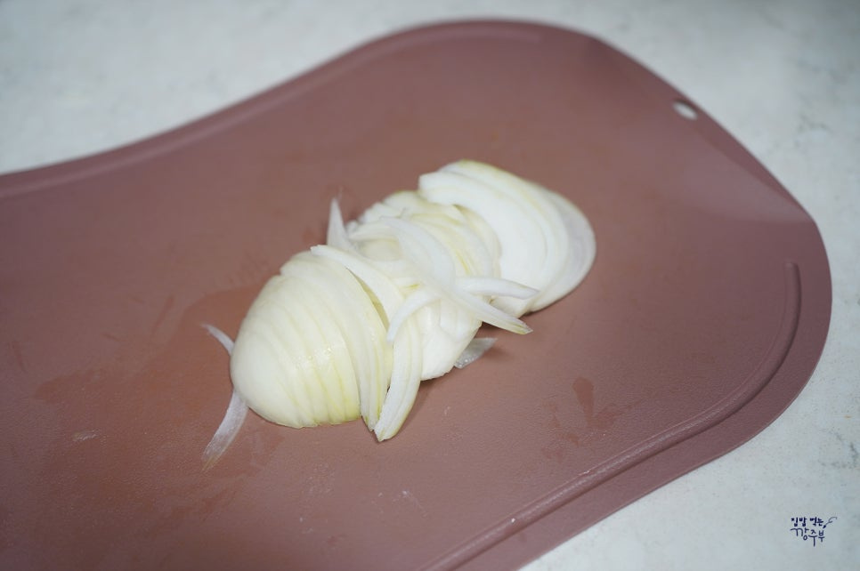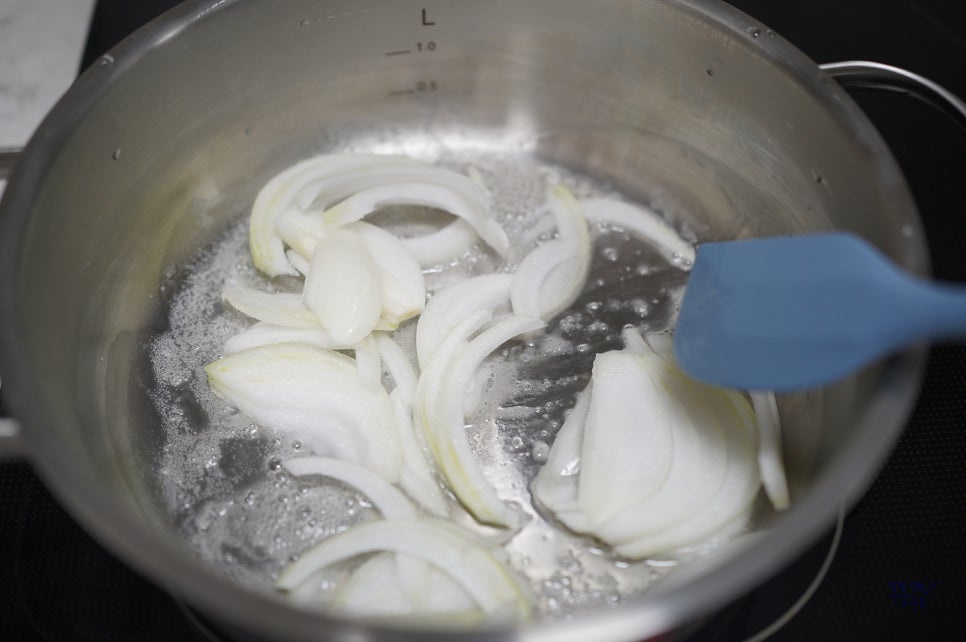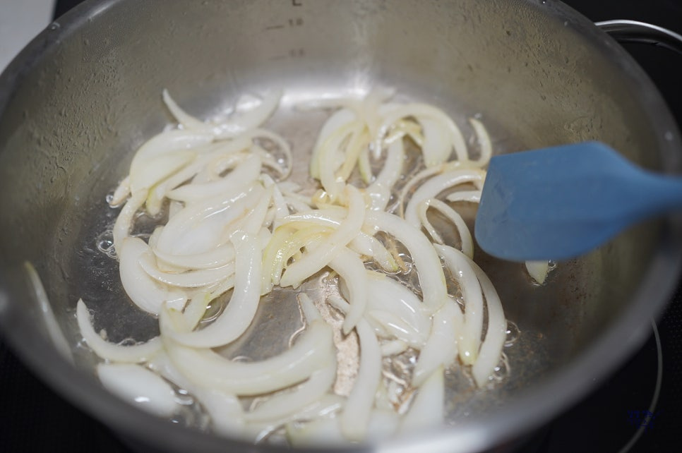 버터가 잘 녹으면 채썬 양파를 넣고 색이 살짝 변할때까지