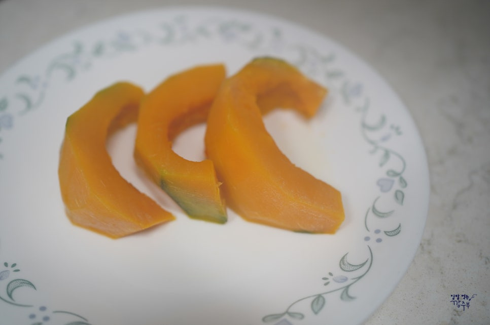 깔끔한 색감을 위해 단호박껍질을 제거한 후
