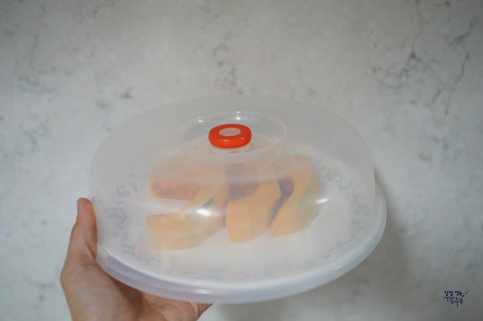 전자레인지용 뚜껑이 없다면 랩으로 씌운 후 구멍을 살짝 내서 돌려주시면 됩니다