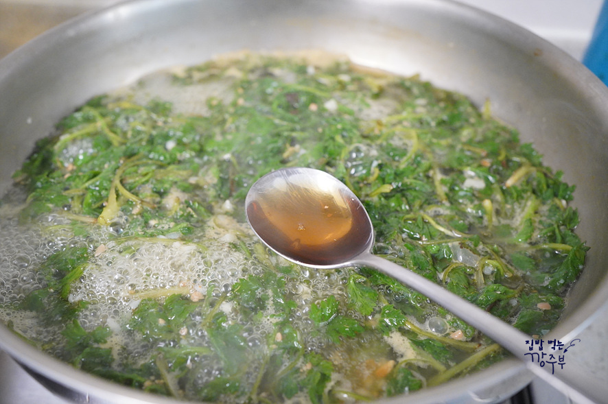 다진마늘 1큰술과 멸치액젓으로 간을 맞춰준 후 한소끔만 더 끓여주세요 쑥국은 너무 오래 끓이면 쑥의 색과 향이 약해져요