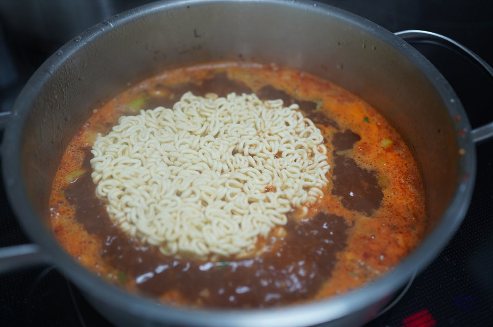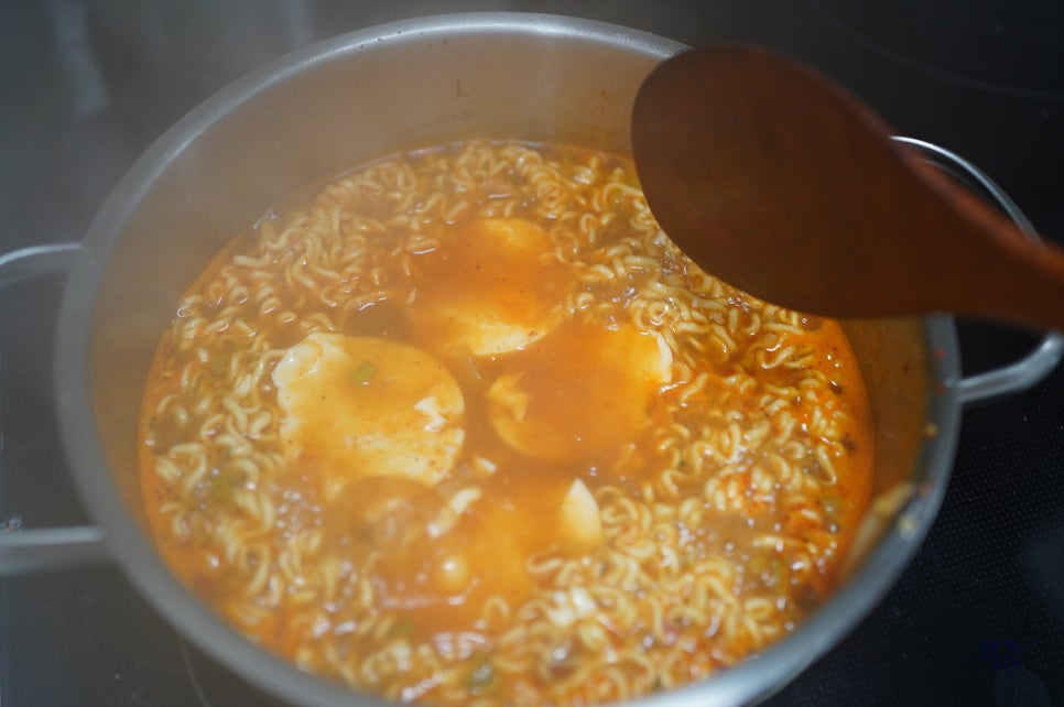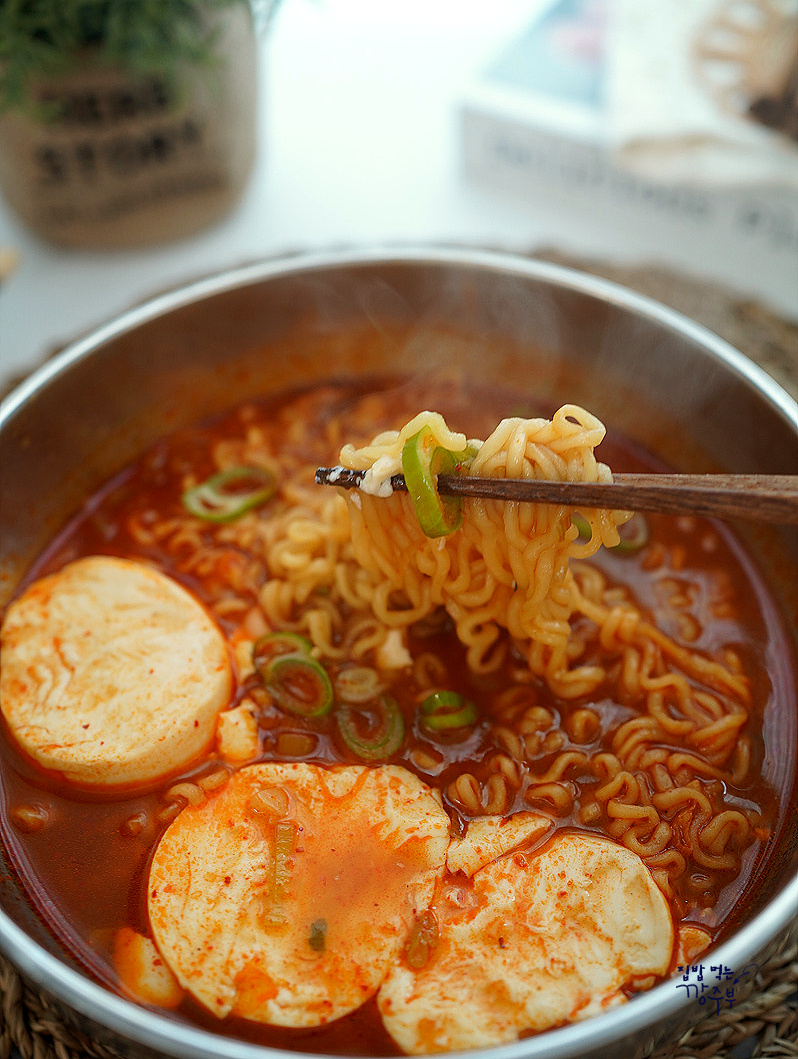순두부 라면을 끓이실 때에는 물을 평소보다 조금 적게 넣어주셔야 해요. 끓이다 보면 슨 부두에서도 물이 꽤 많이 나와서 생각보다 물양이 많아지거든요
