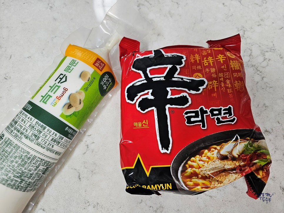 얼큰한 열라면으로 준비하려다가 귀찮아서 집에 있는 신라면 사용했어요