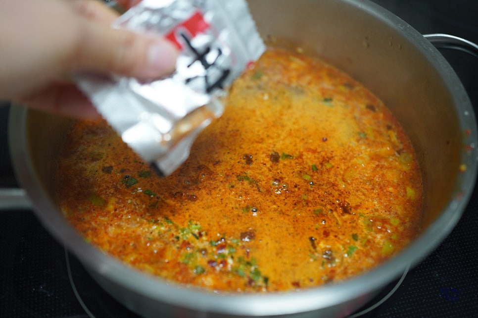 저는 순두부 1/2봉만 넣어줬어요. 순두부 양은 기호에 맞게 조절해 주시고요