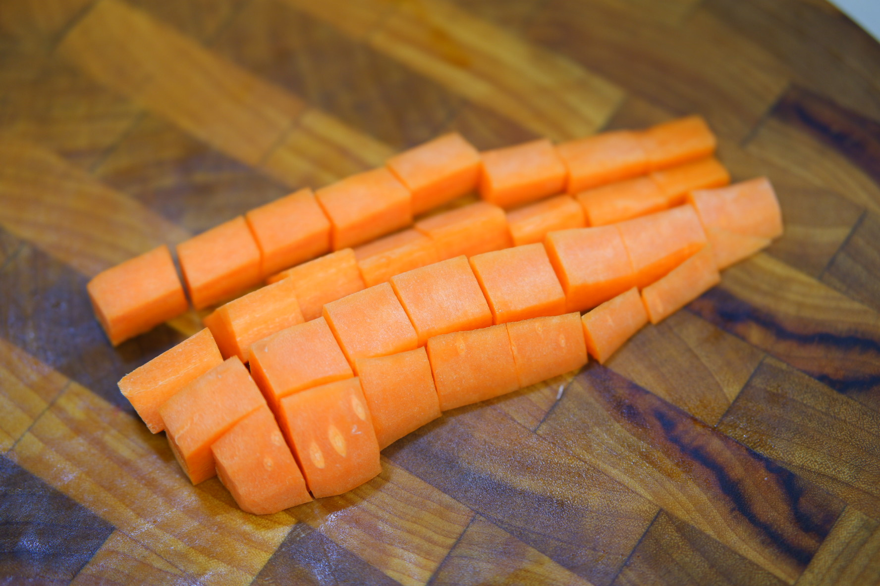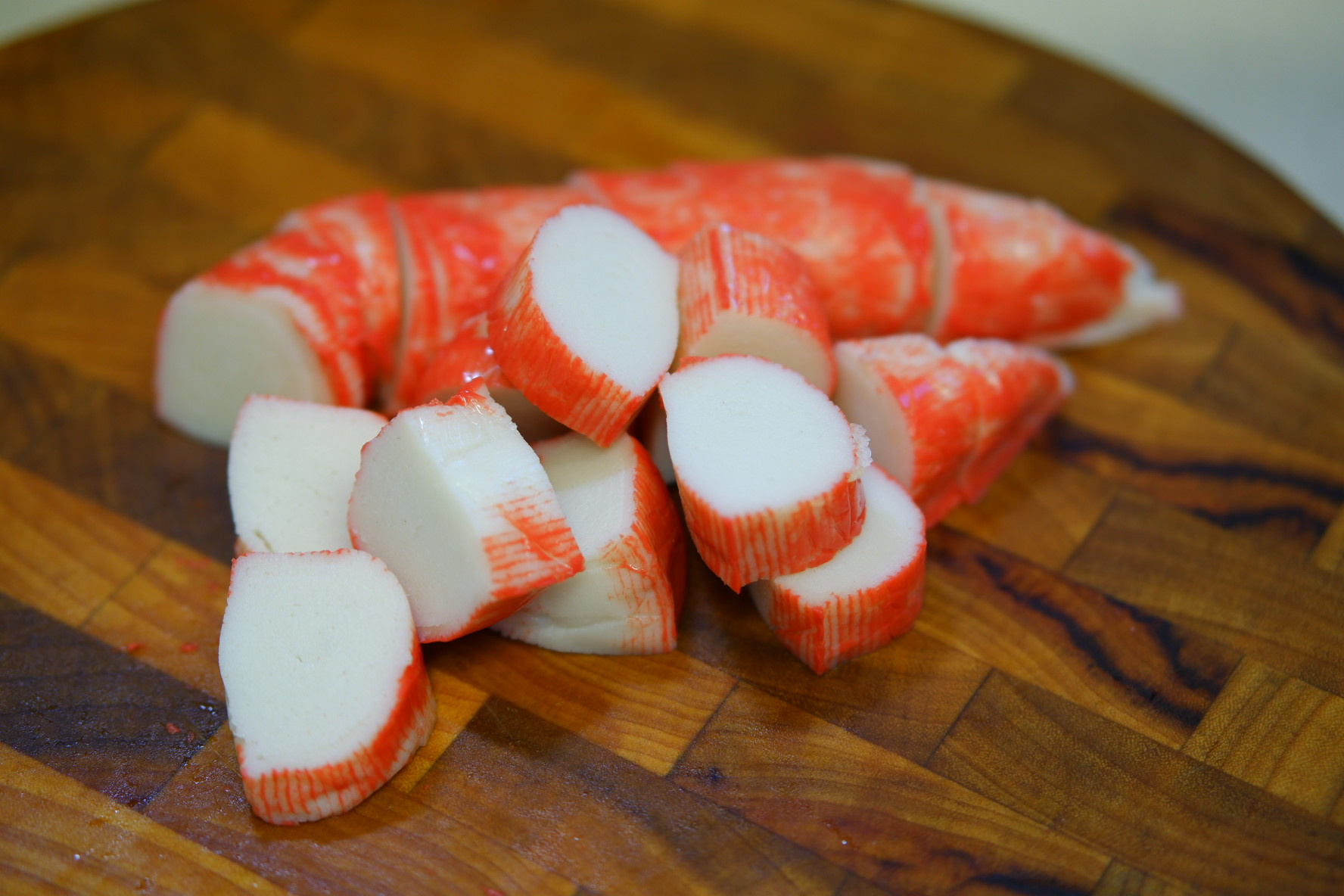 당근은 세척 후 껍질 벗겨 깍둑 썰고 크래미는 듬성듬성 썰어 주세요.