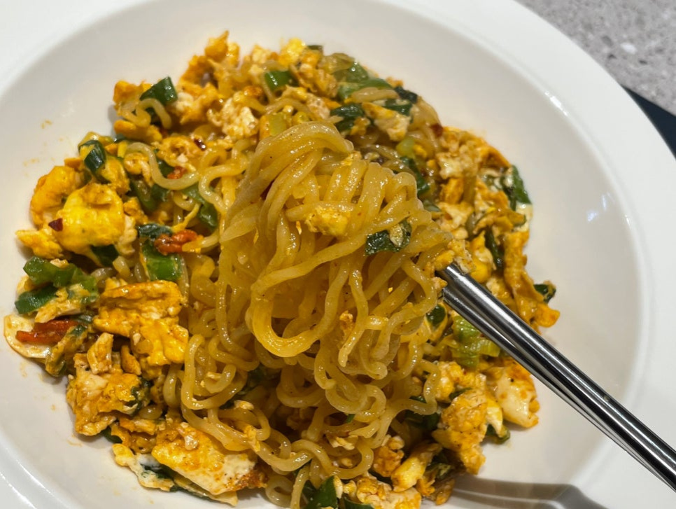 뻑뻑하다 싶으면 면수(라면 삶은 물)를 조금씩 추가해 주세요