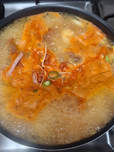라면사리, 사골육수,대파, 양파