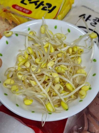 집에 있는 떡국떡과 햄 콩나물을