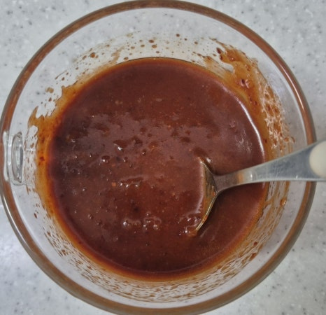골뱅이 캔 안에 든 국물 2스푼을 넣어주면 감칠맛이 더 살고 양념장이 촉촉해집니다.