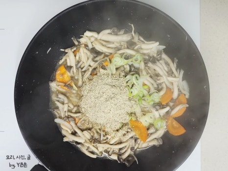 수분이 엄청 많이 나왔을 거예요. 들깨가루가 농도를 맞춰줄 거니 걱정하지 마세요.