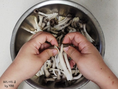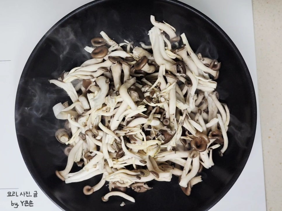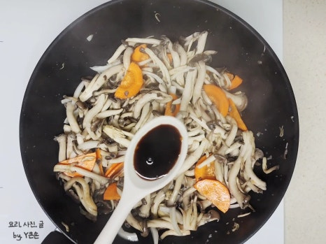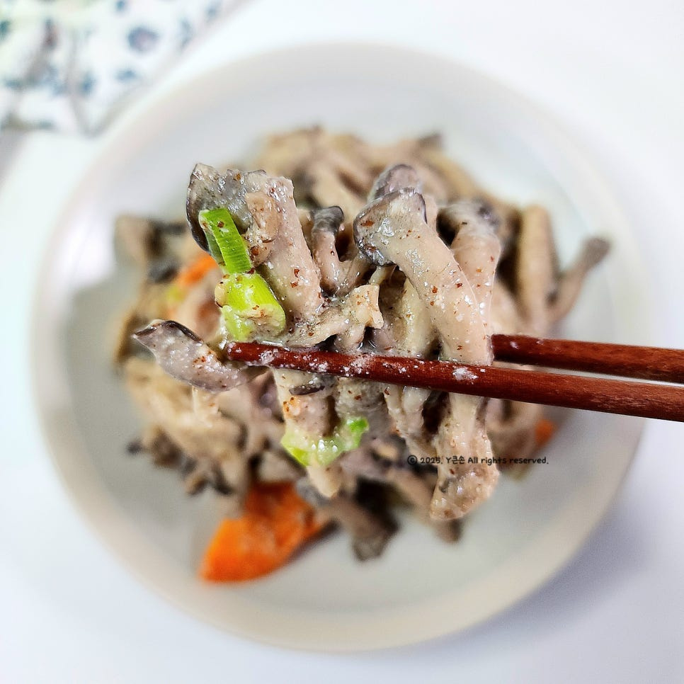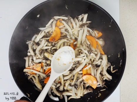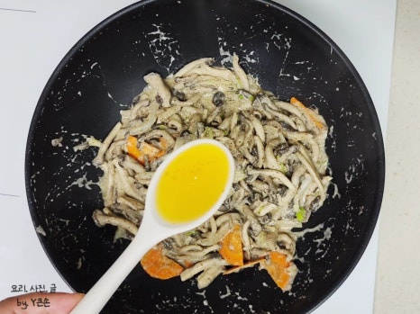 들깨가루로 농도를 맞출 예정이라 데치지 않고 바로 볶았어요. 만약 들깨가루 없이 볶을 거라면 한 번 데쳐 사용하면 수분이 줄어요.