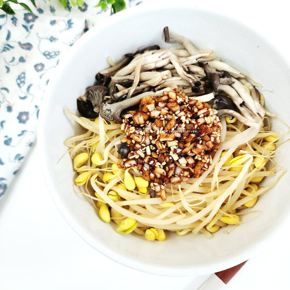 콩나물/느타리버섯 수분이 나오므로 물은 따로 넣지 않아도 돼요.