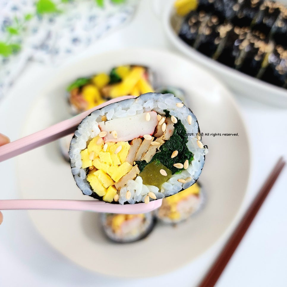 뜨거운 밥은 김밥 터지는 이유 중 하나, 김이 눅눅해지면서 쉽게 찢어질 수 있어요. 한 김 식혀 사용하세요.