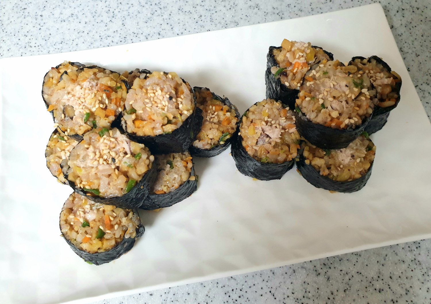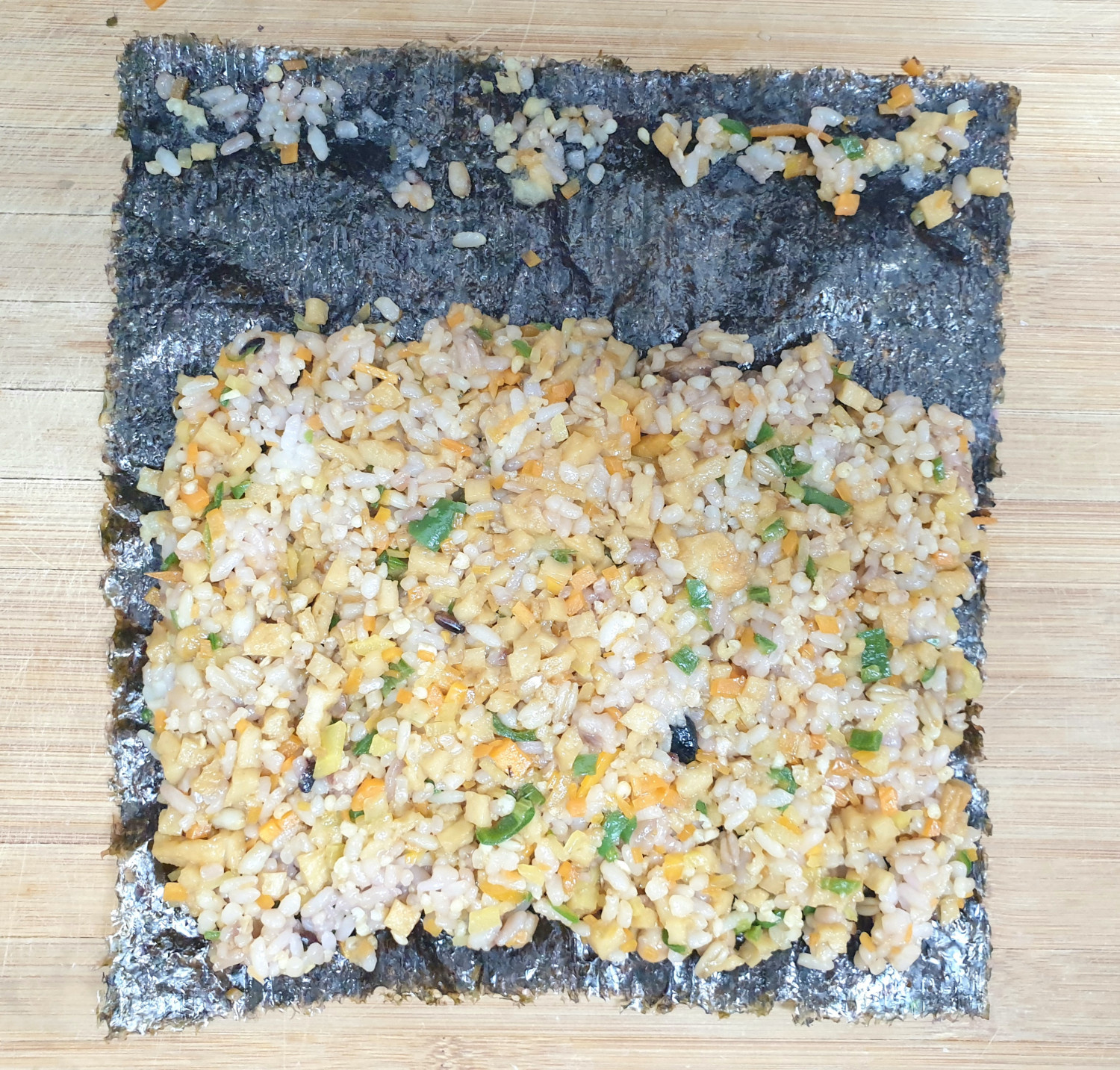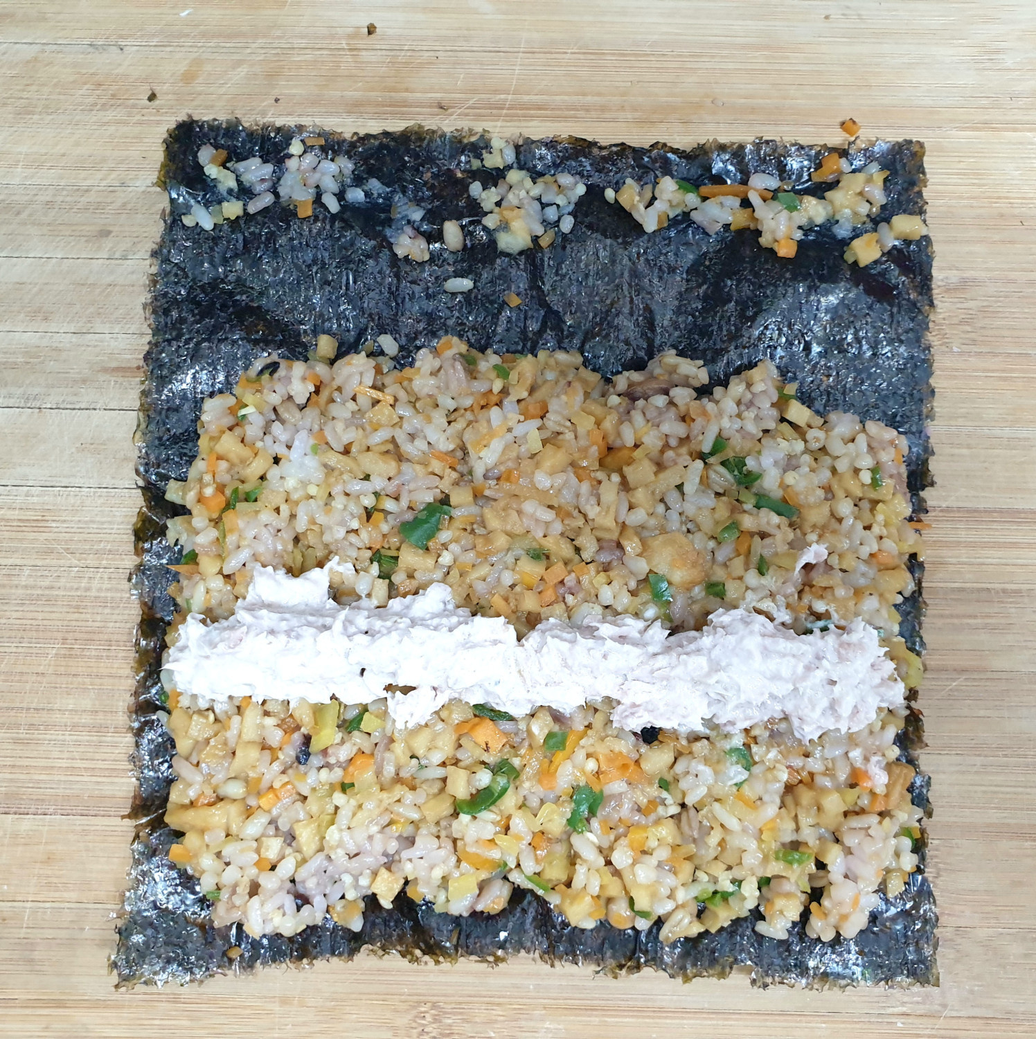 분리되지 않도록 끝에 밥을 으깨 풀칠을 해주면 좋아요.