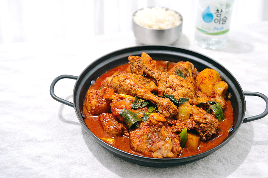 닭은 찬물에 10분간 담가 핏물을 빼서 사용했어요.
