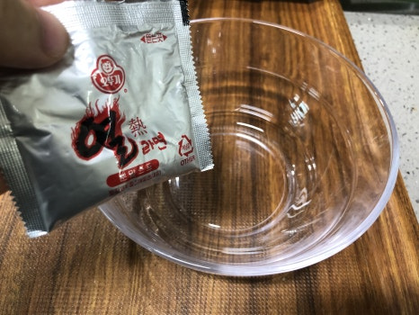 라면스프(1개), 물(120ml)