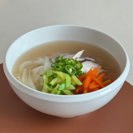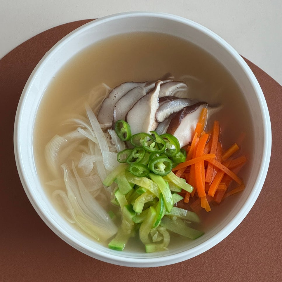 - 토렴한 면 위에 채소고명을 올리고, 마지막에 육수를 부어 드시면 됩니다!