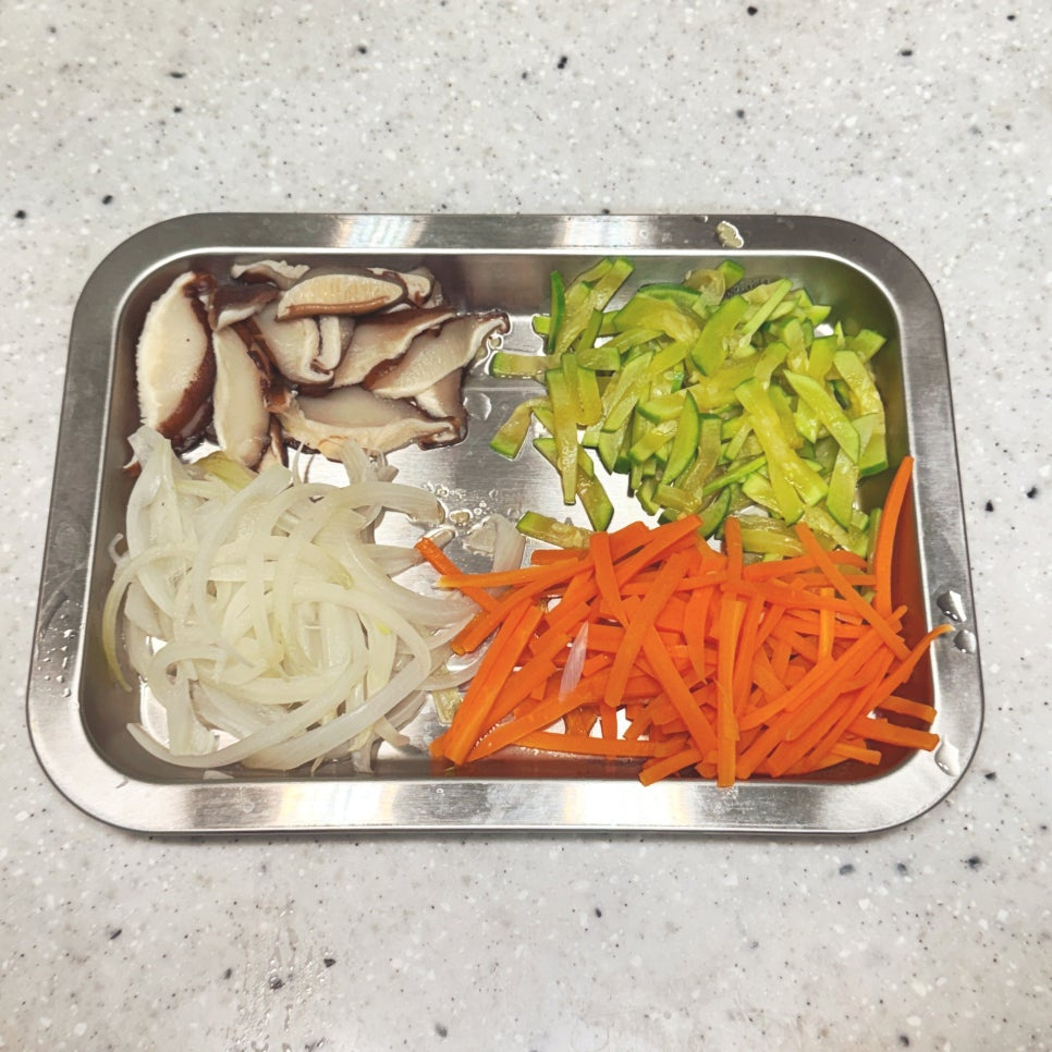 - 냄비에 물 500ml를 넣고 끓으면 양파 > 버섯 > 애호박 > 당근 순서로 데쳐서 익혀주세요.
