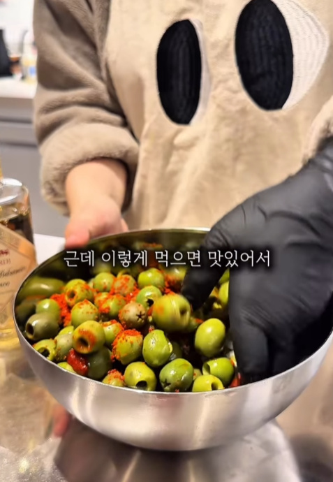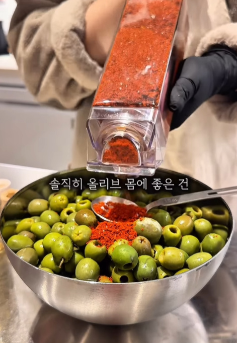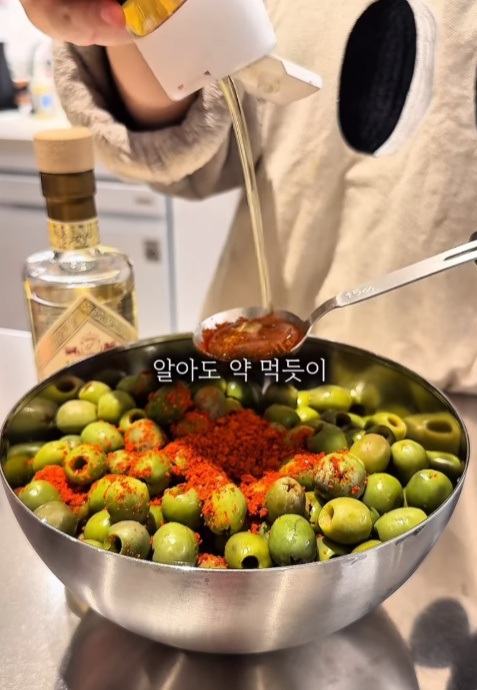 저 진짜 맛있는 것만 알려드리는 거 아시죠? 올리브에 양파 다져 넣고 슥슥 버무려 보세요.