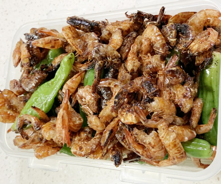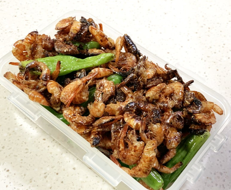 용기에 담은 꽈리고추건새우볶음 완성입니다.