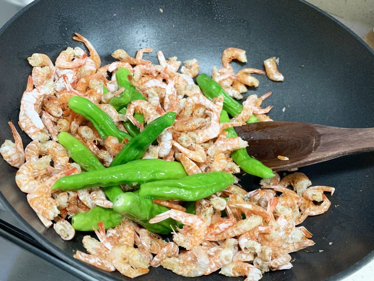 두번째로 꽈리고추를 넣은 건새우볶음을 만들어 봅니다.