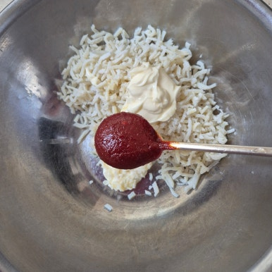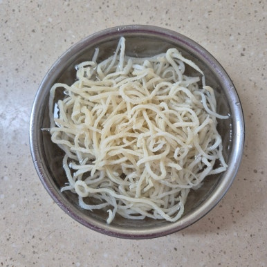 진미채 140g, 참기름 1큰술, 올리고당 1큰술, 마요네즈 1큰술, 고추장 3큰술, 통깨 1작은술