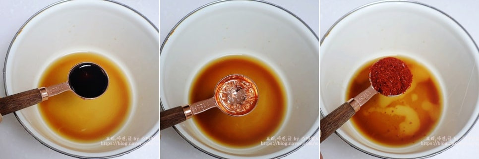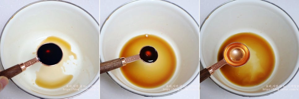 볼에 양조간장 2큰술과 참치 액 0.5큰술, 식초 2큰술을 넣고
