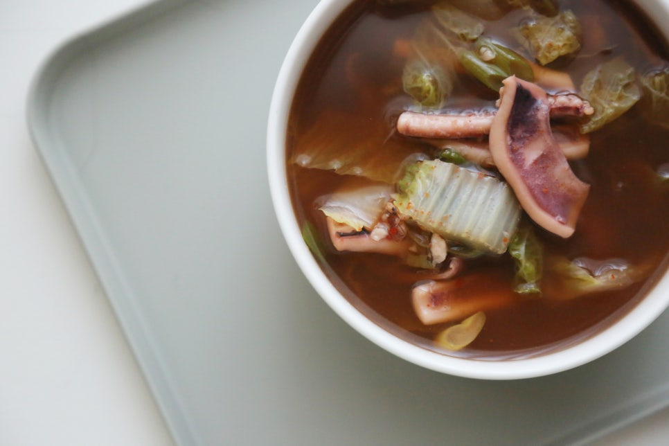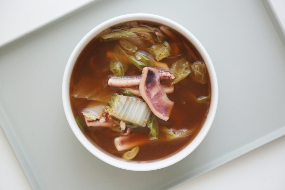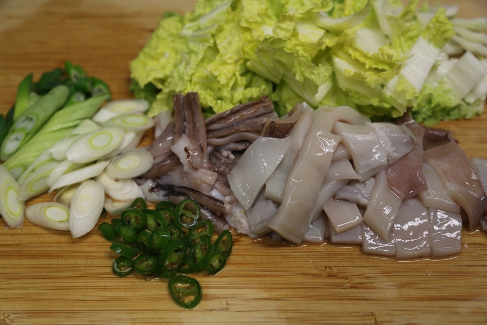 오징어 2마리, 알배추 1/2포기, 대파 1대, 청양고추 2개