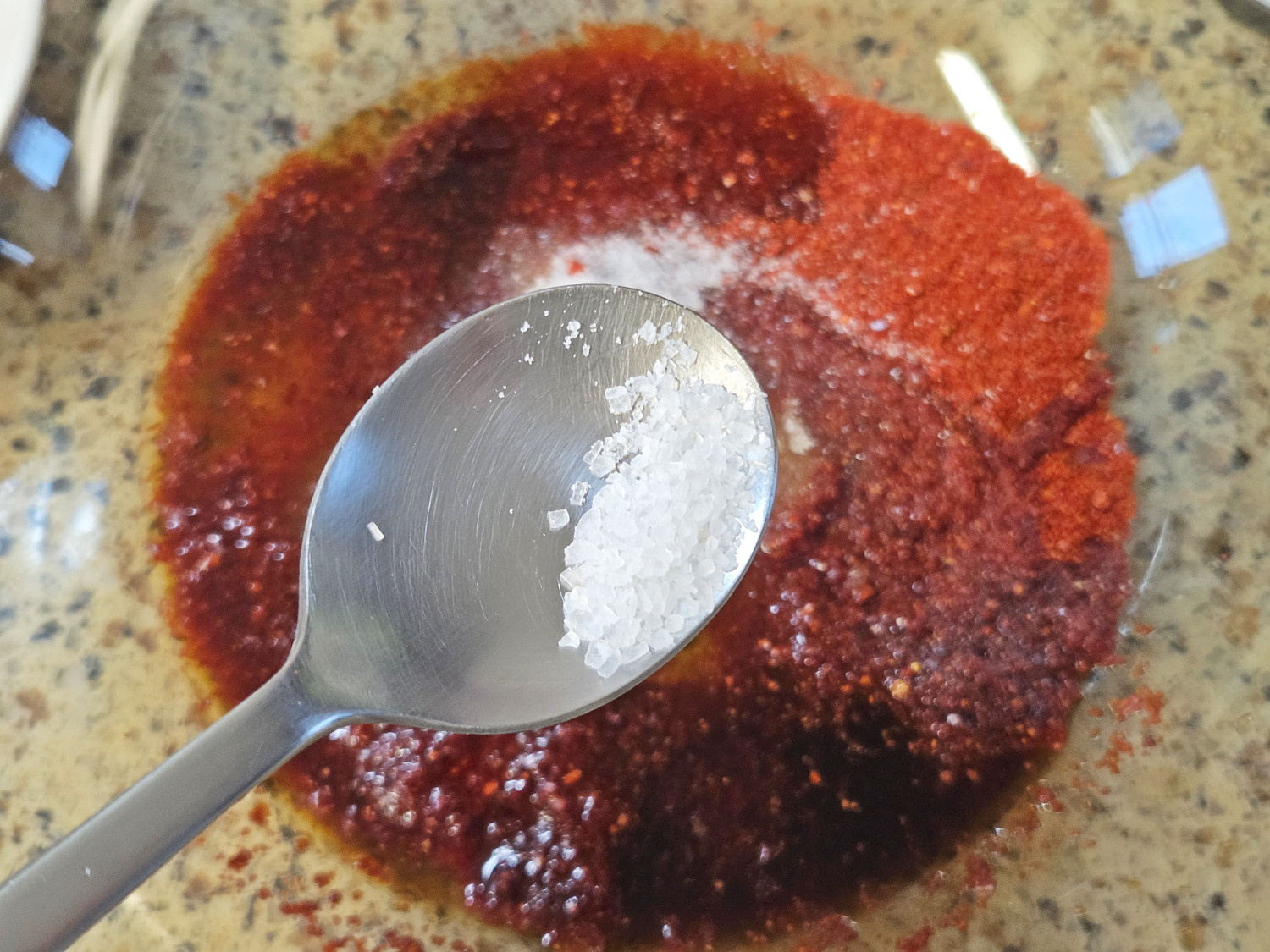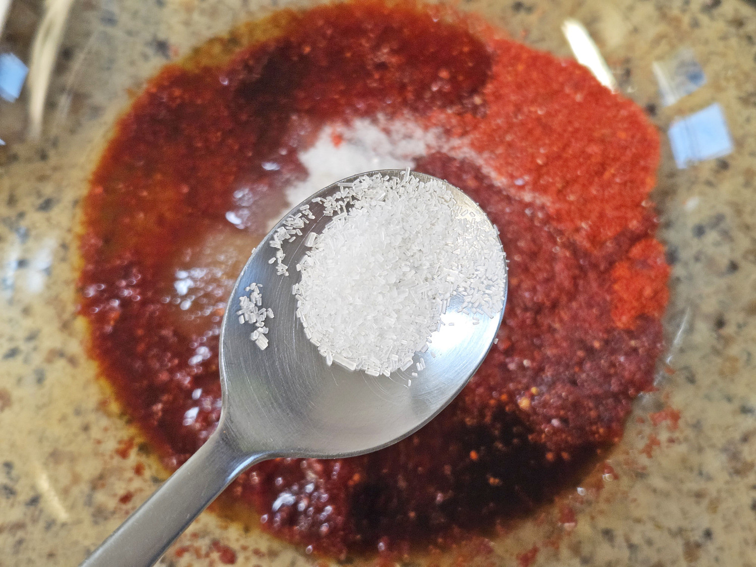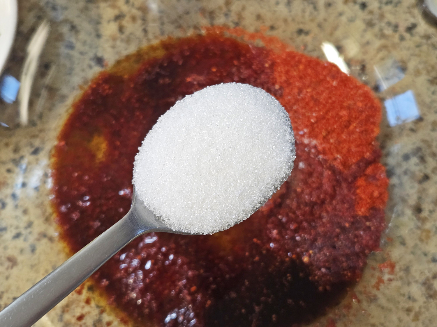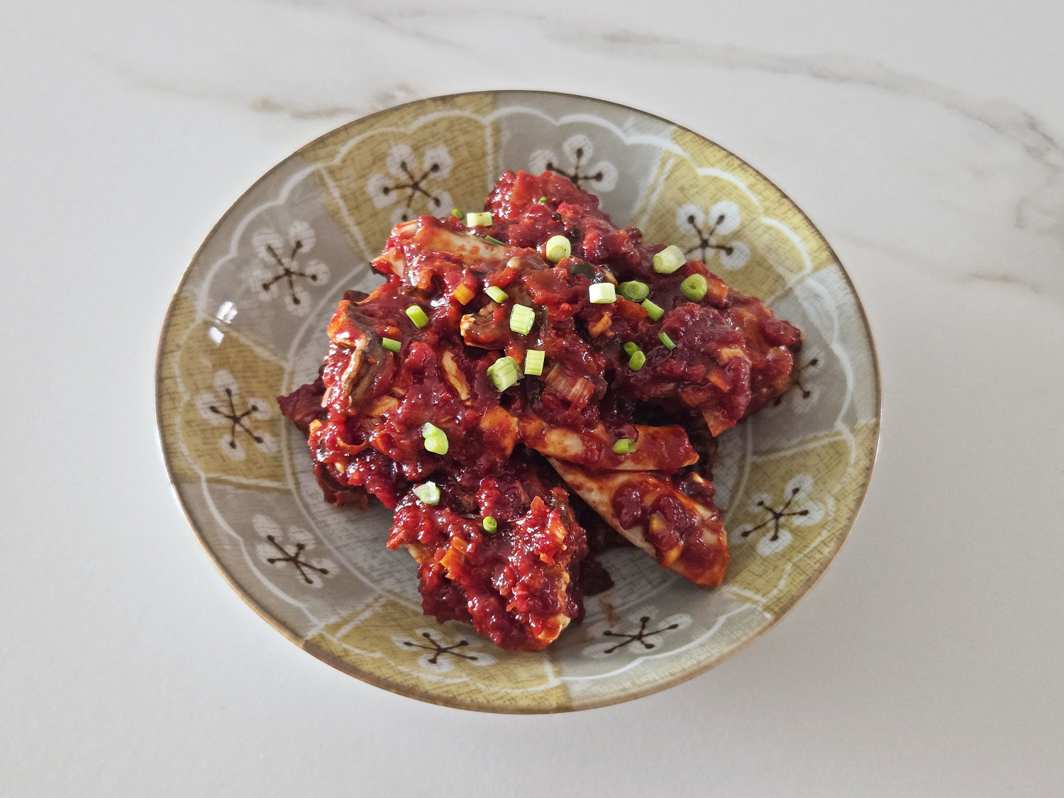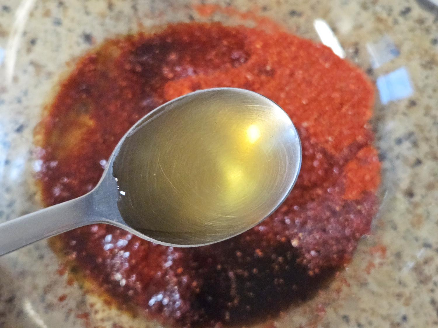 넓은 볼에 고춧가루 8큰술(½컵 정도), 연두 4큰술, 진간장 4큰술, 맛술 2큰술, 물엿 2큰술,