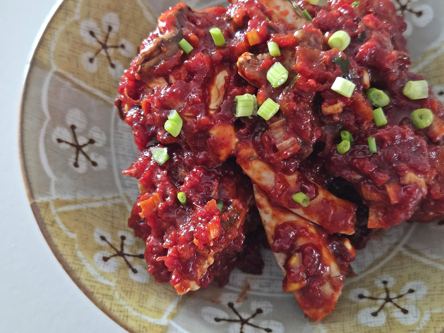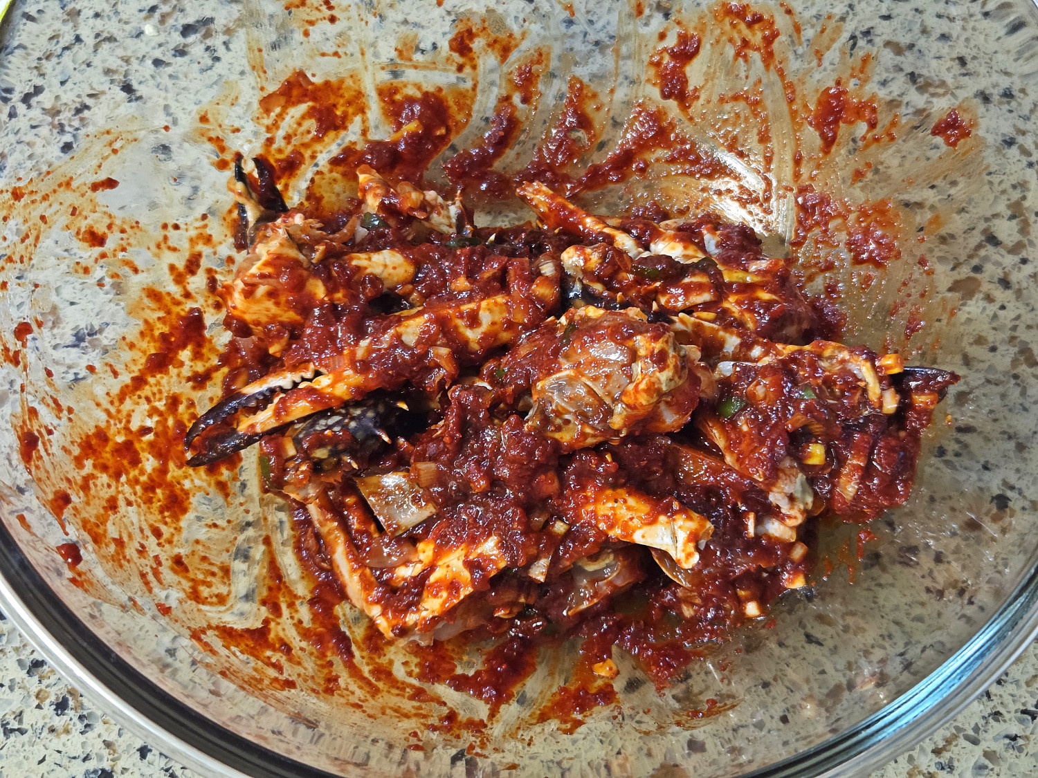 그런 다음 손질한 꽃게를 넣고 골고루 무쳐주기만 하면 끝!