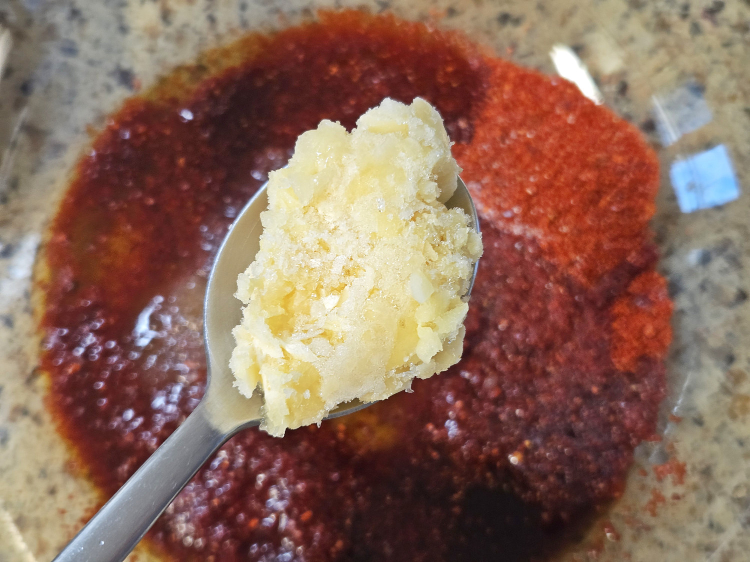생강청 2큰술, 설탕 2큰술, 다진 마늘 1큰술, 미원 1작은술, 소금 2꼬집 정도 넣고 잘 섞어줍니다.