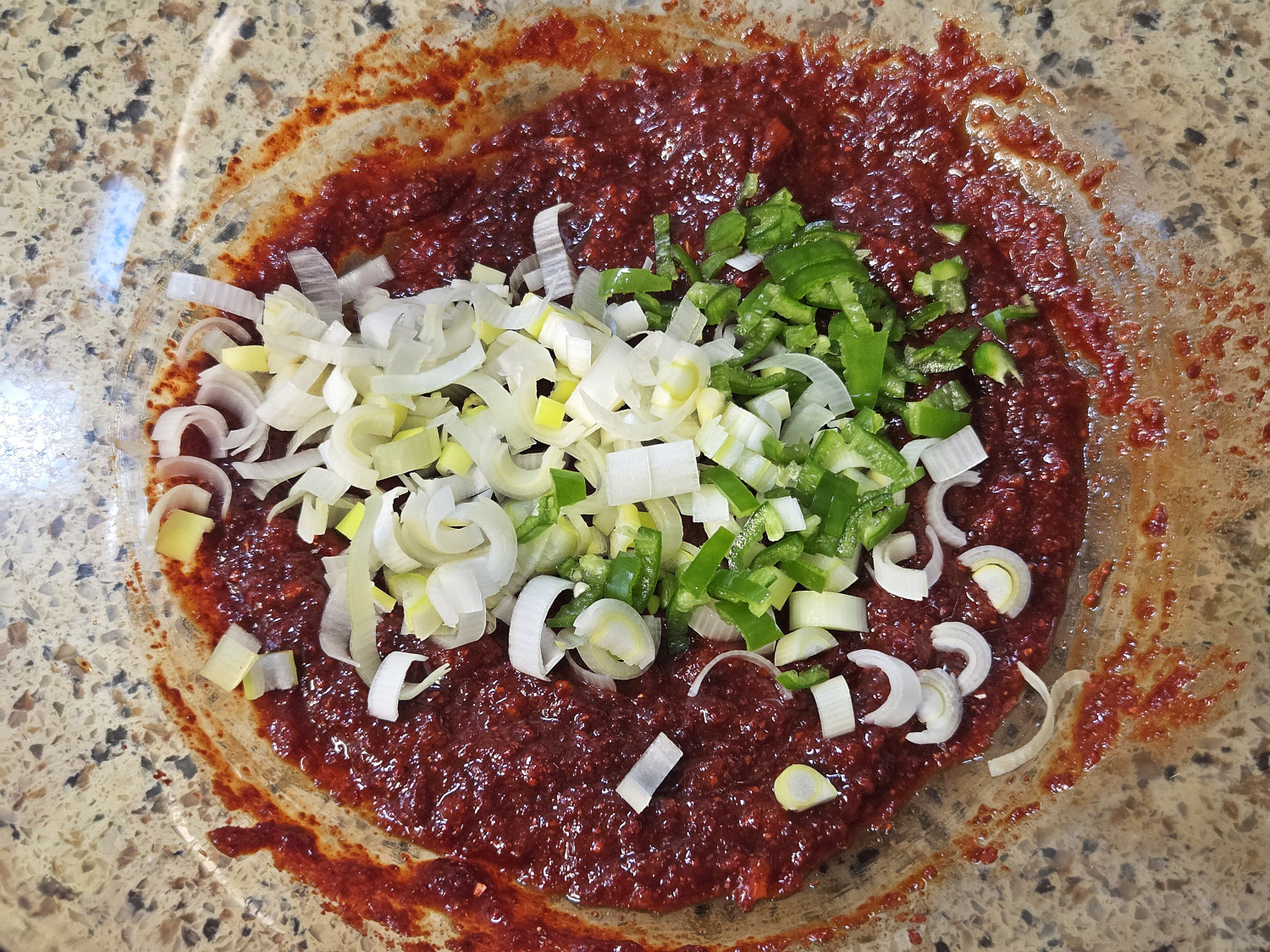 양념에 대파와 청양고추를 넣고 잘 섞어줍니다.