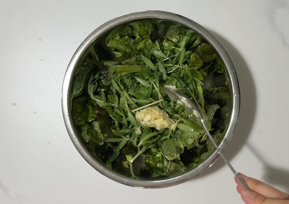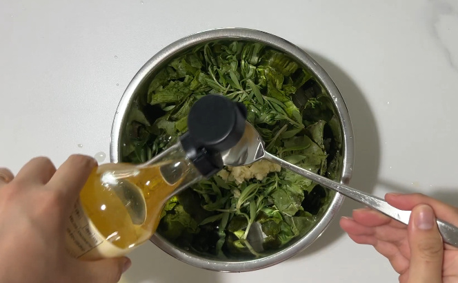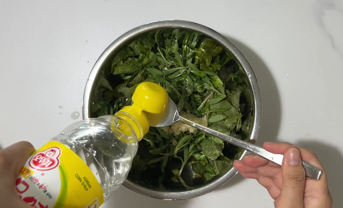 다진마늘 1, 식초 2, 물엿 2, 올리브유 1, 알룰로스 0.5, 액젓 1, 통깨 1