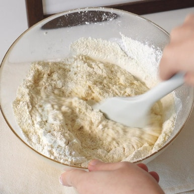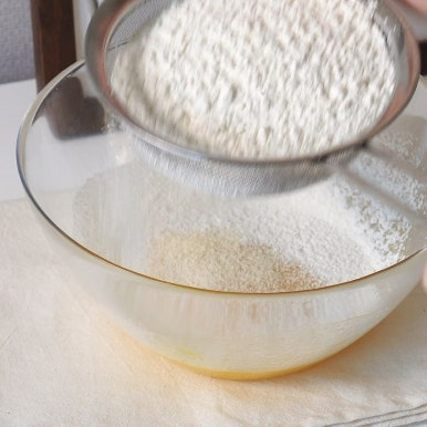박력분 130g, 베이킹파우더 1g, 아몬드가루 75g