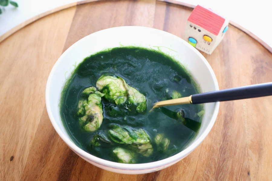 일단 커다란 볼에 물을 넉넉히 받아요. 그리고 매생이를 풍덩! 손으로 막 비비는 거 아니야~ 노노! 손끝으로 살살 풀어주듯이, 마치 아이 다루듯이 흔들어 주는 거예요.