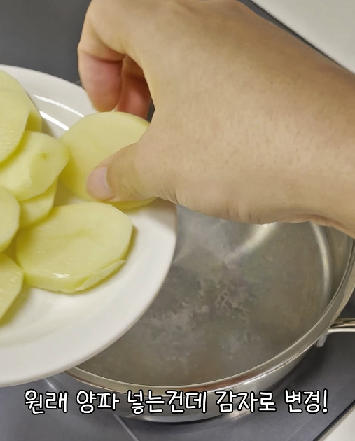 원래는 양파를 넣으려고 했는데 집에 양파가 없어서 감자를 대신 넣어봤거든요?