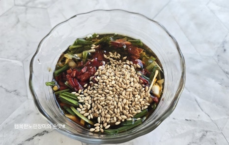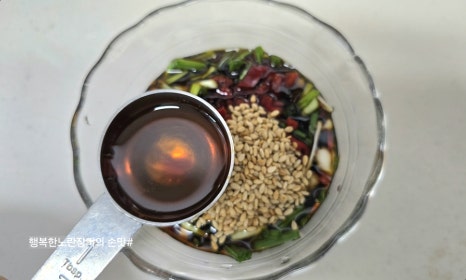 간장 3T, 참기름1T,통깨 1T. . .원당1t