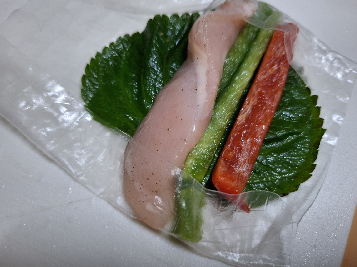 그리고 말아둔 닭가슴살채소스틱을 올려서