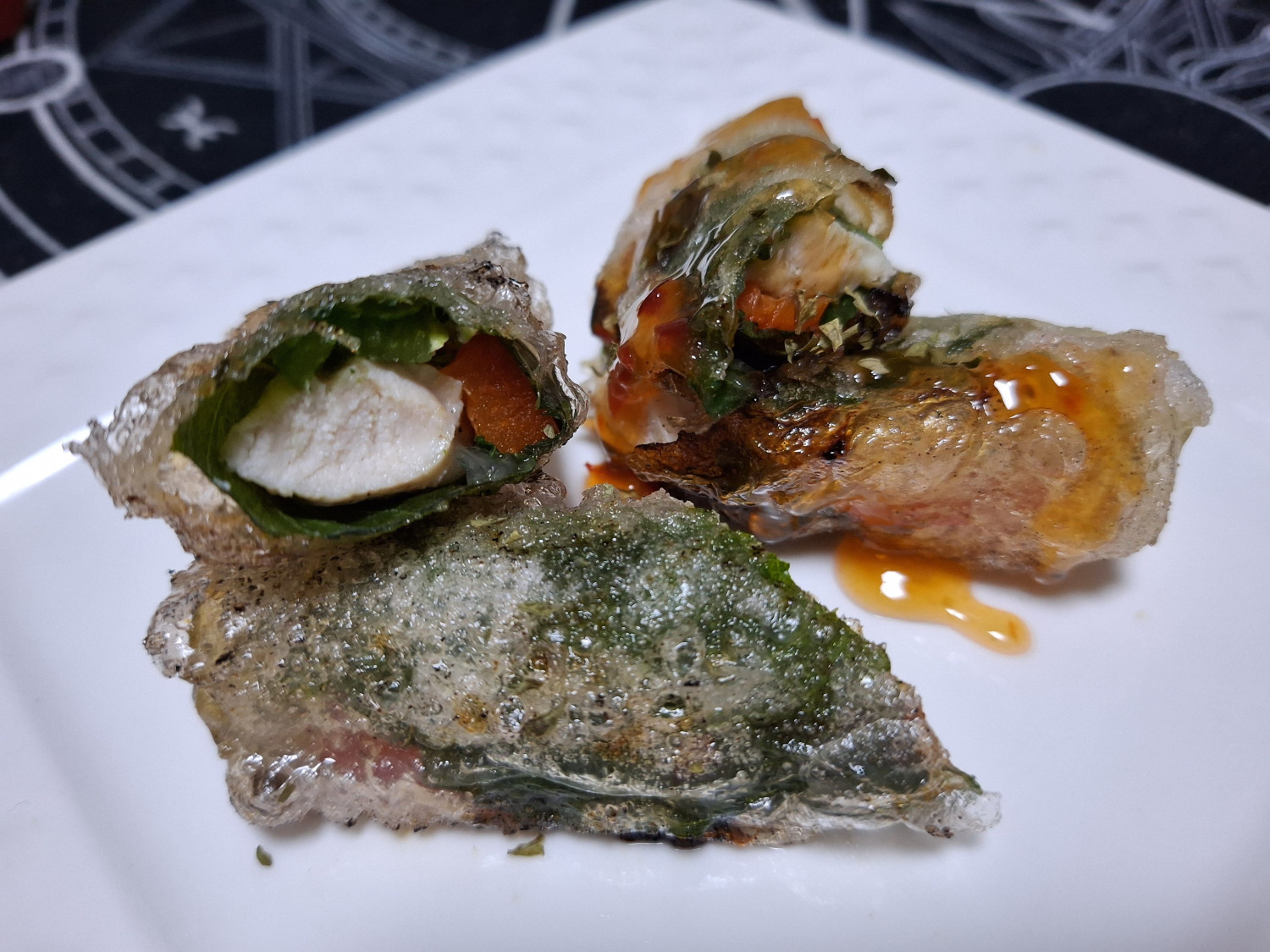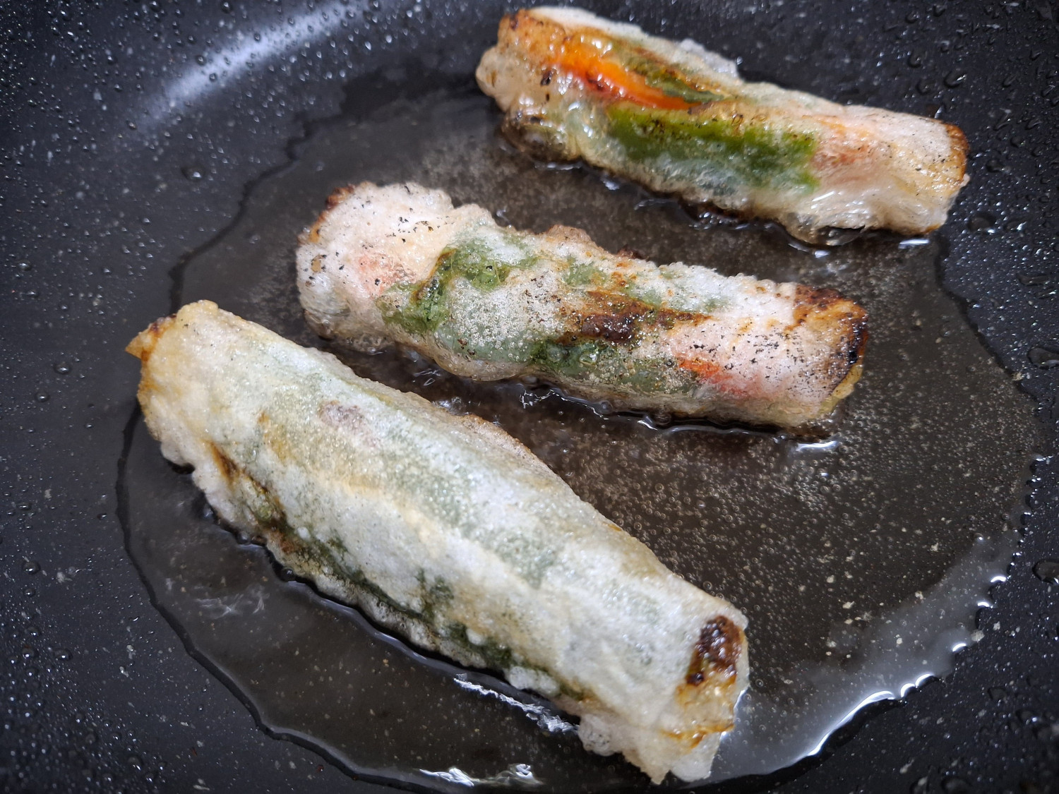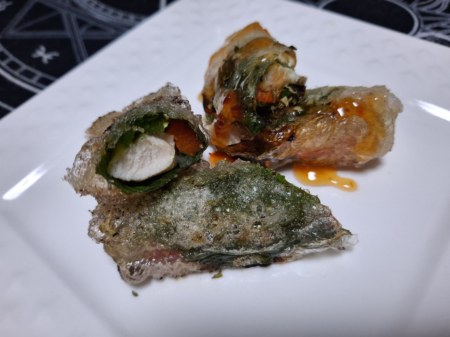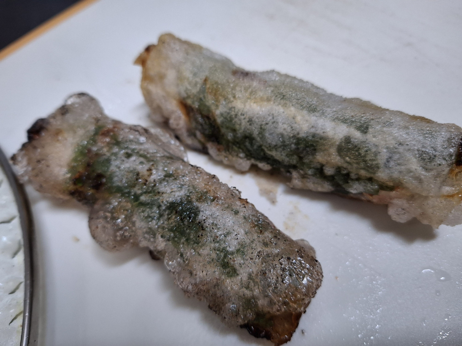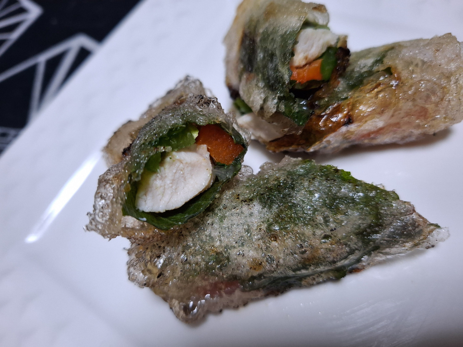라이스페이퍼를 두장으로 겹쳐서 말아주면 훨씬 더 바삭해지기도 하고요.