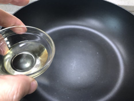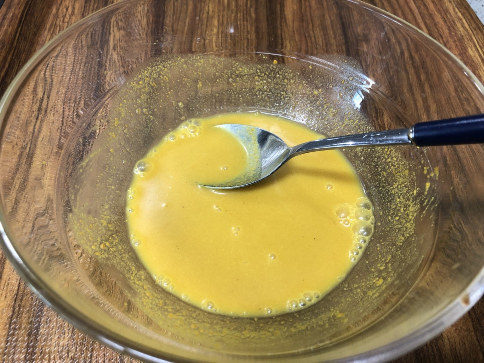 준비된 팬에 식용유(5스푼)을 넣고 불을 켜 줍니다.