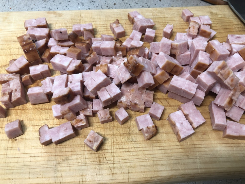 햄(250g)을 작은 큐브모양으로 썰어줍니다.
